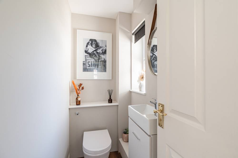 The ground floor accommodation briefly comprises: welcoming hallway with stair to the upper level, understairs storage and a convenient downstairs WC, generously sized bay fronted reception room which benefits from a bright dual facing aspect, direct access to the rear garden and features tasteful modern décor, coving and engineered wood flooring, spacious dining kitchen which has been fitted with an assortment of base and wall mounted units/coordinated worktops, complete with splash tiling, a range of appliances and a good sized dining space overlooking the garden, utility room, and versatile downstairs bedroom/additional reception room.