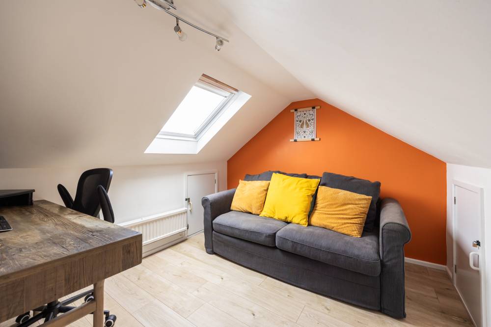On the upper levels you have a good-sized principal bedroom with fixed storage, a second smaller double bedroom, main family bathroom with tiling to walls, attractive three-piece white suite, over-bath shower/splash screen. The accommodation concludes with a versatile attic room, which is currently being used as a home office by the existing owners.
