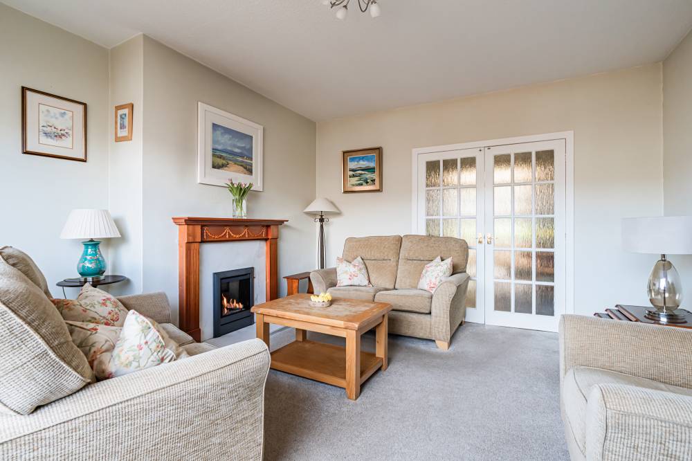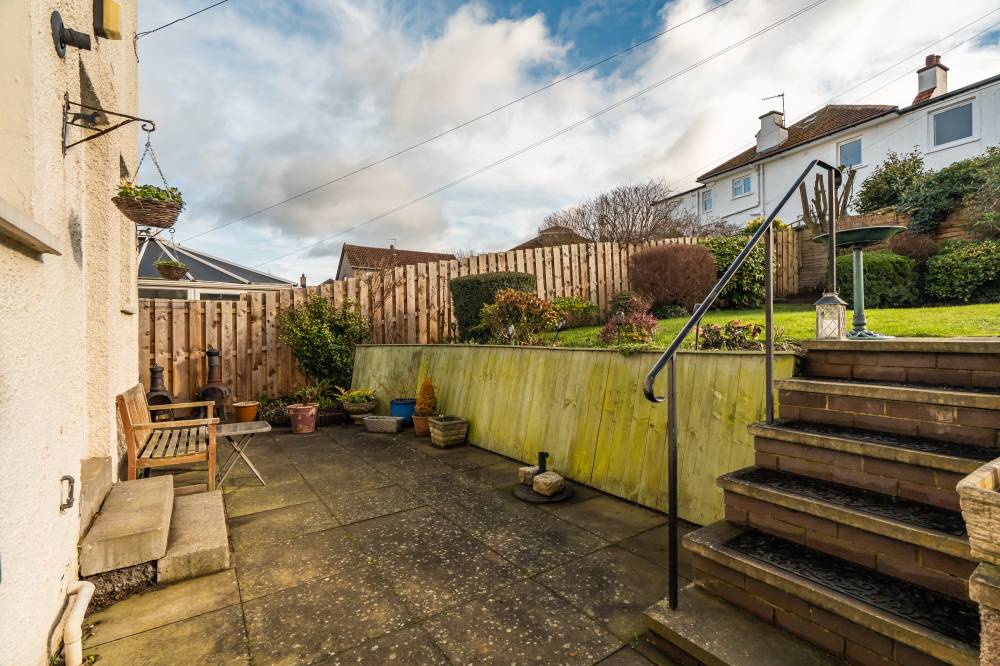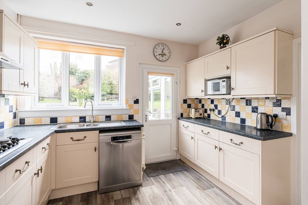 A pebbled front garden with hedge for privacy welcomes you to the property and to the rear, there is a delightful south facing, fully enclosed garden bordered by shrubs and trees with a lawn and patio, offering a peaceful setting for outdoor dining and a safe place for children and pets to play. A garage with an up and over door, light, and power adds practical convenience, while the large driveway provides off street parking.