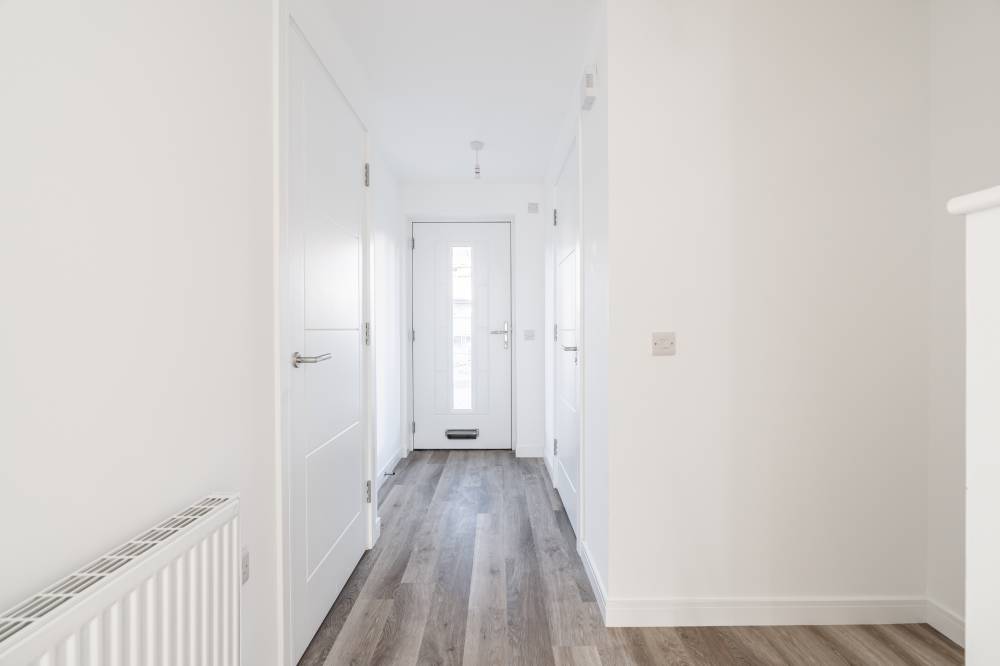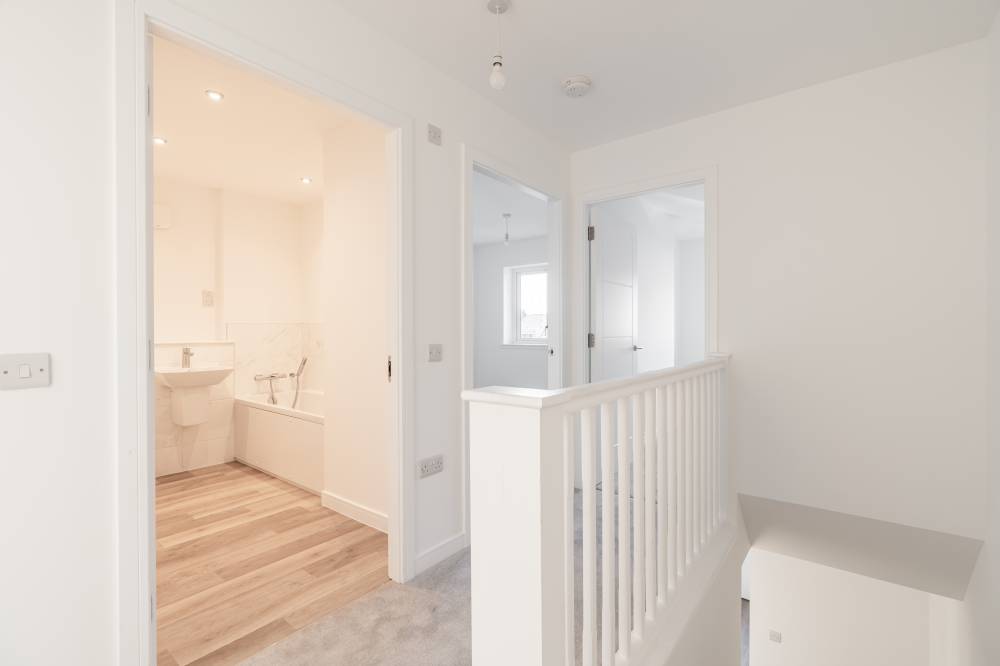 On the first floor there are three bedrooms and a family bathroom. The principal bedrooms boasts a designer en-suite shower room plus a built in wardrobe. There is the option to add a wardrobe into bedroom 2 and bedroom 3 has a storage cupboard. The family bathroom benefits from the same luxury sanitaryware as the en-suite & WC and all are complimented by a selection of larger profile Porcelanosa ceramic tiling, creating a sleek and modern design.