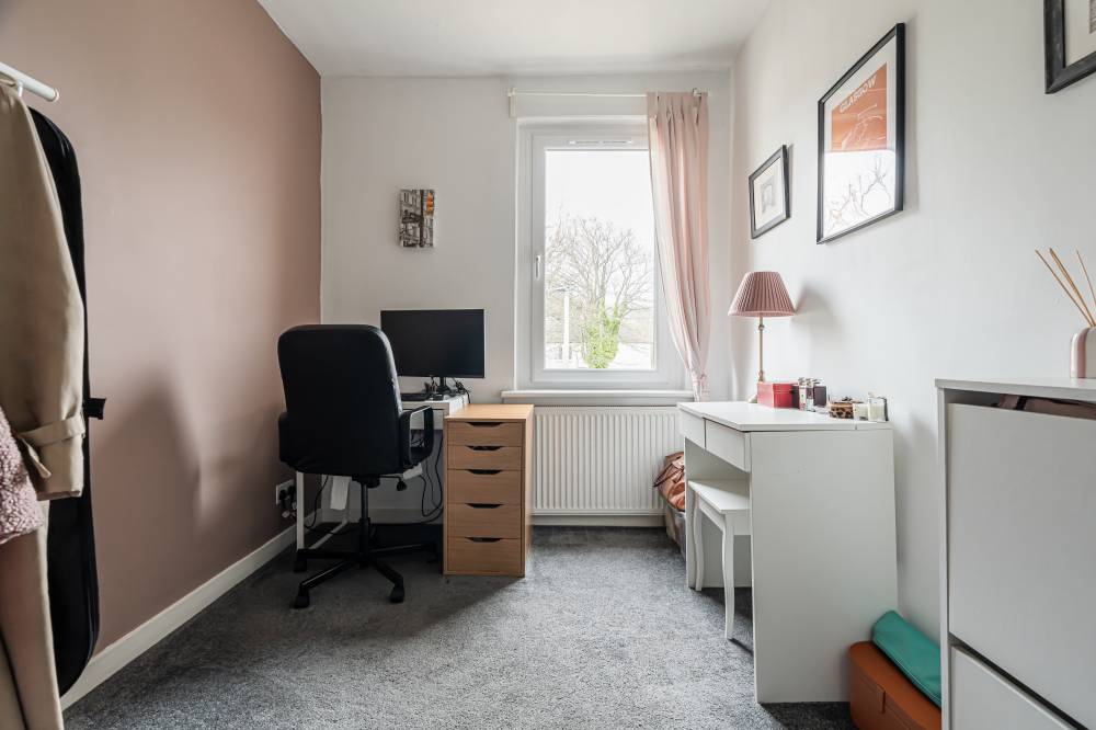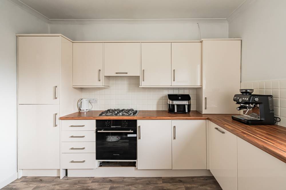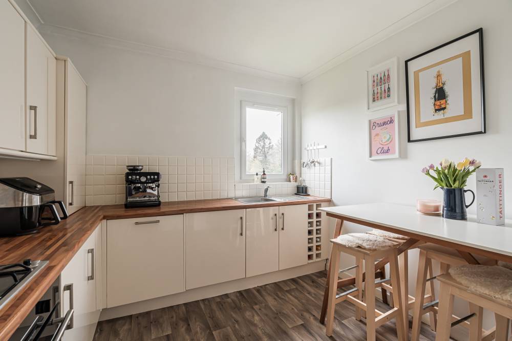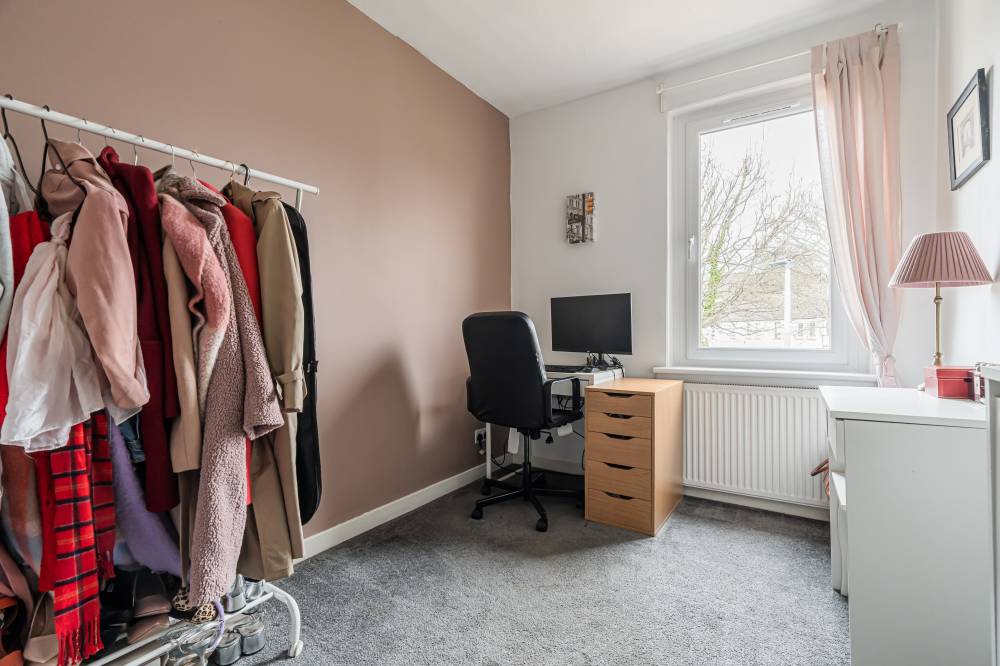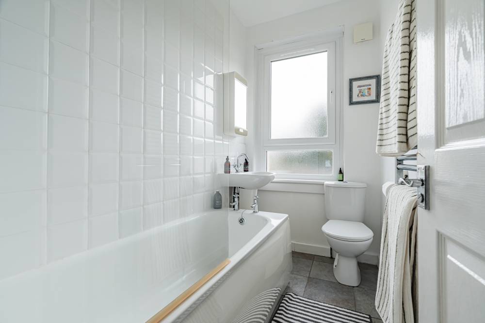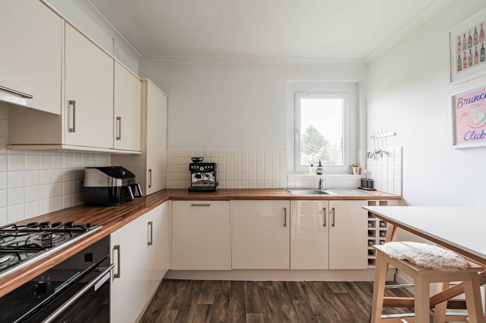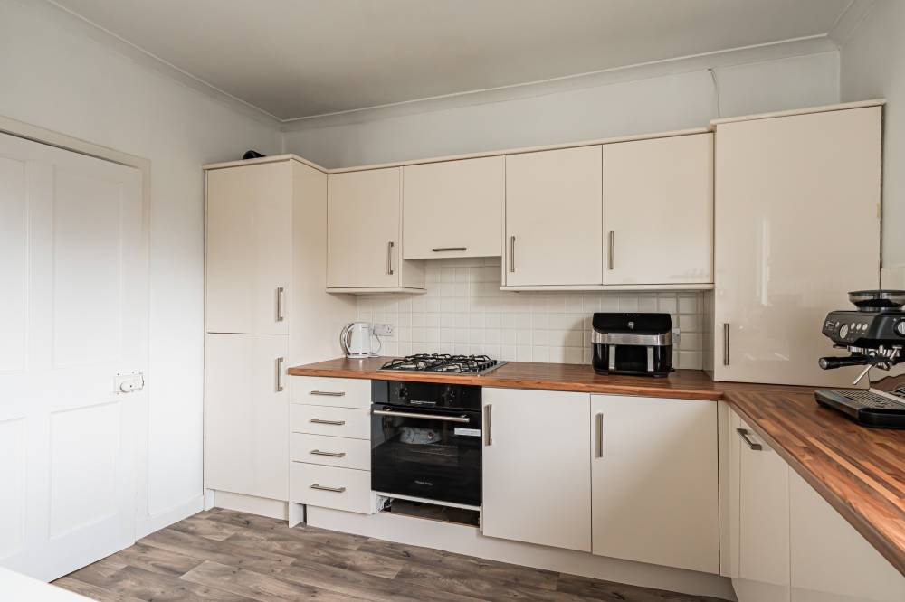 The property shall undoubtedly appeal to the first time buyer/couples or investors and merits internal viewing to be fully appreciated. In brief the light and stylish accommodation comprises well proportioned sittingroom with twin windows to the front, there is a sizeable kitchen/diner located off the sittingroom, with aspect to the rear. The integrated kitchen is fitted with a range of wall and base units with built-in gas hob, electric oven, hood and integrated appliances. There is adequate space for dining table and chairs. There are two generous double bedrooms, with the larger of the two benefiting from free standing wardrobes, which can be included in the sale. Finally, the modern bathroom comprises of a white three piece suite with mains shower over bath. Further benefits include double glazing and gas central heating with combi boiler.