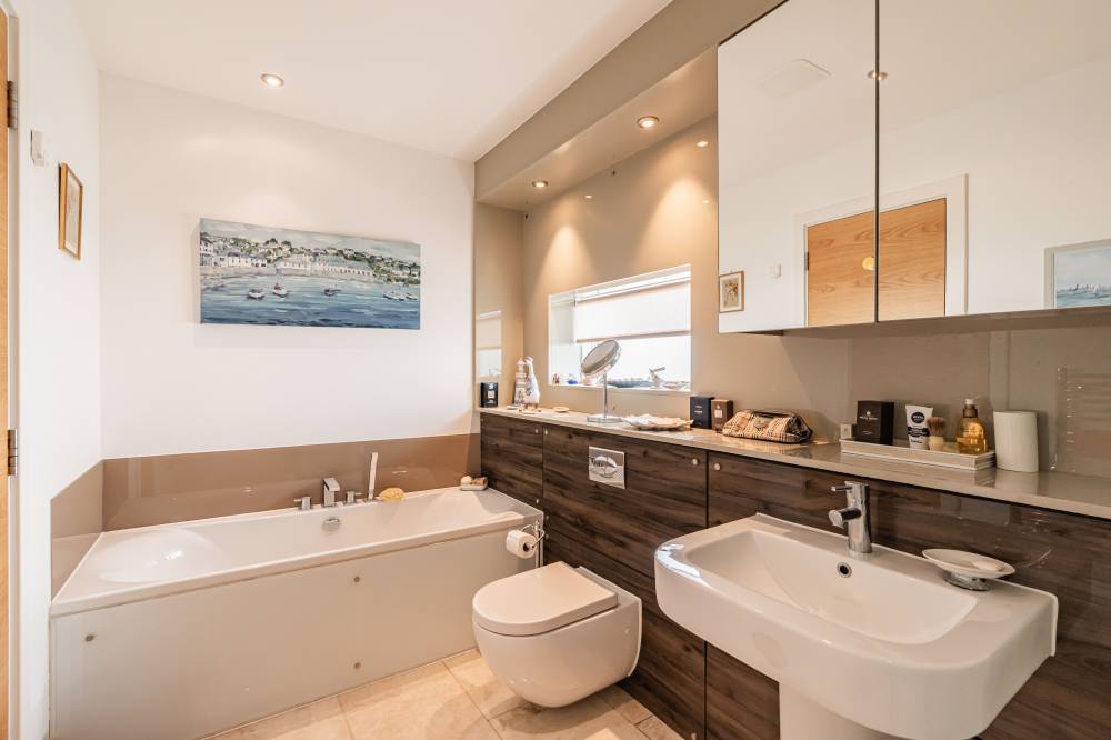 The property opens with a welcoming private vestibule leading into a generous hallway, where extensive built-in storage adds both convenience and practicality. The spacious reception and dining room features an electric coal effect fire and is flooded with natural light and features sliding doors that open directly onto a private garden. French doors connect the reception area to a contemporary kitchen and breakfast room, well-equipped with a full range of integrated appliances including a fridge freezer, dishwasher, oven, hob, microwave, and extractor hood. The layout is perfectly suited for both everyday living and entertaining. The principal bedroom offers an impressive retreat, complete with a luxurious four-piece en-suite bathroom. A second double bedroom benefits from built-in wardrobes, while the third room, currently in use as a versatile single bedroom, could also serve as a study or nursery. A modern shower room is also fitted with a stylish white suite. Further enhancing the practicality of the home is a separate utility room, housing the gas boiler, washing machine, tumble dryer, and hot water tank and there is a shared external storage room. The property also benefits from gas-fired underfloor central heating and double glazing throughout, ensuring year-round comfort and efficiency. This is a rare opportunity to acquire a stylish, move-in ready property within one of Edinburgh’s most desirable contemporary developments – early viewing is highly recommended.