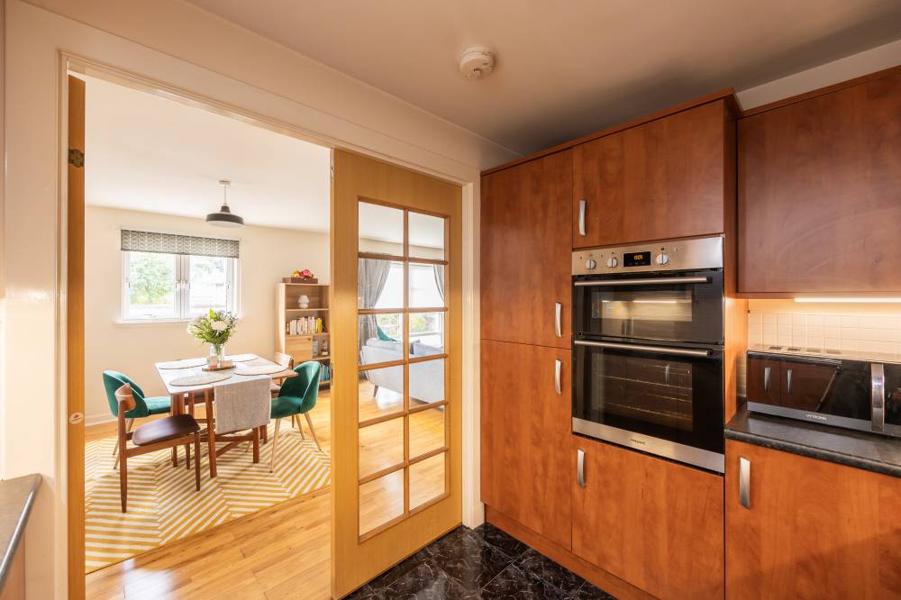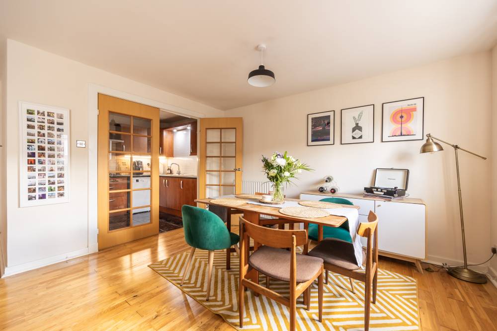 In true move in condition, you enter a welcoming entrance hall with secure entryphone system and storage, which then leads you to the generous lounge/dining room which has an electric fire, and a full length window with a view to Arthur’s Seat and a Juliette balcony, allowing plenty of natural light to flood the room. Glazed doors lead to the modern kitchen with a range of wall and base units with co-ordinated worktops and splashback tiling. There are two double bedrooms both with built in wardrobes, and the principal has an en-suite shower room. Completing the accommodation is a stylish bathroom with a white suite. The property also benefits from gas central heating and double glazing.