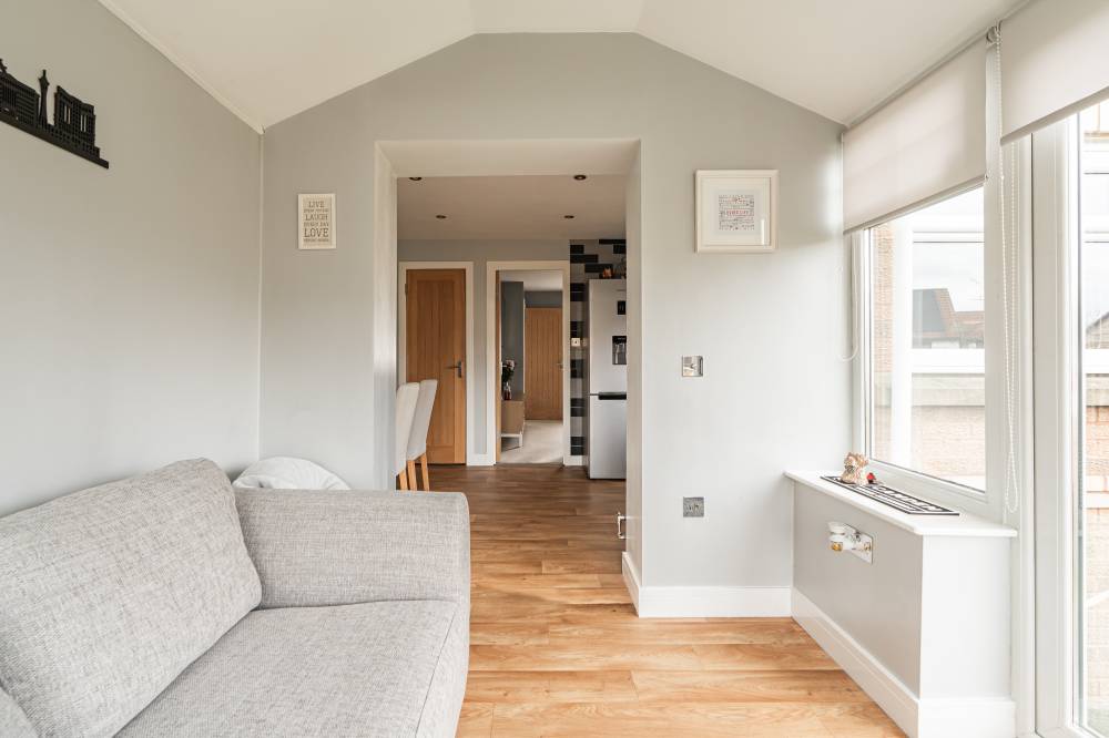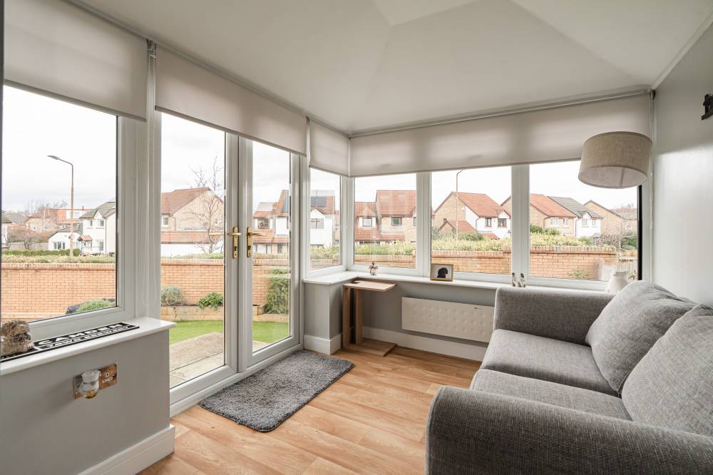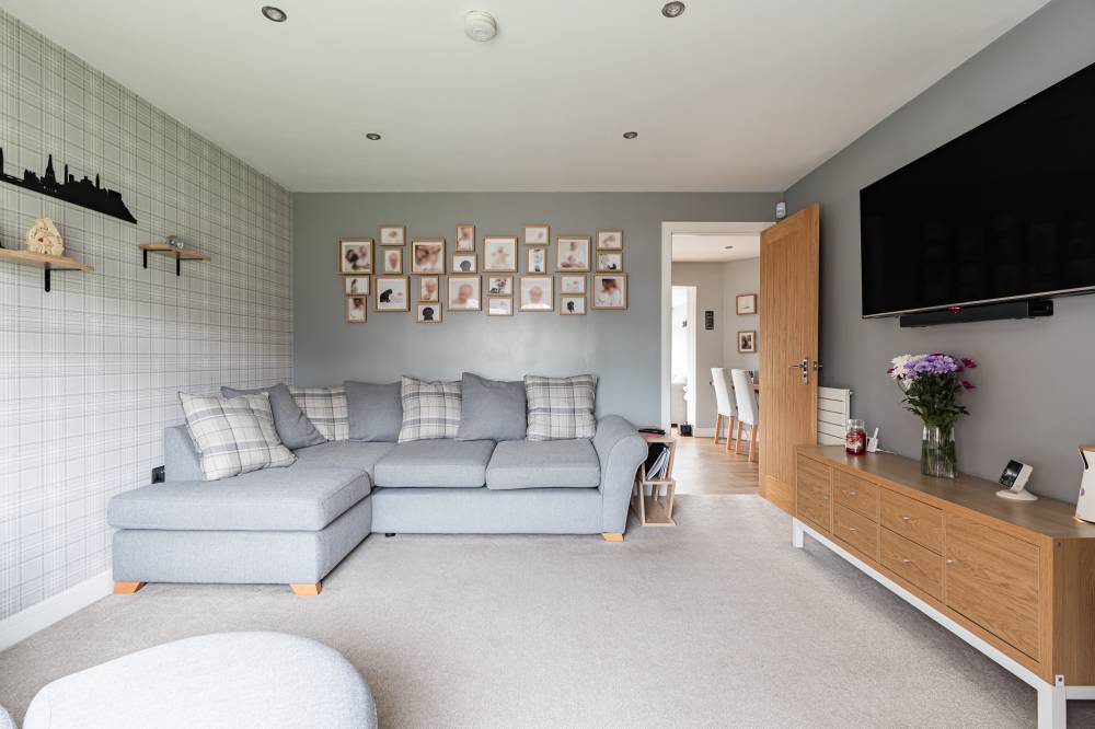 Presented for sale in excellent condition throughout, this delightful home offers bright and attractive accommodation ideal for both family life and entertaining. The property has undergone a comprehensive programme of upgrading in recent years including the boiler, windows, internal doors, kitchen and bathroom. The front door opens to a welcoming hallway leading to the spacious reception room with window to the front. A door from here leads to the modern kitchen/breakfast room, refitted in recent years with an excellent range of wall and base units with integrated double oven, hob and cooker hood with the washing machine, drier and dishwasher all also included in the sale. A breakfasting bar provides space to eat in the kitchen or can be used as a desk space for those looking to work from home. A large under-stair storage cupboard offers useful additional storage space. The sun room is open plan to the kitchen and offers an ideal spot to relax and enjoy the garden, whatever the weather, or could easily be used as a dining space if desired. Stairs from the hallway lead to the first floor where there are three good sized bedrooms, with the principal bedroom to the rear enjoying views to Corstorphine Hill and featuring built-in wardrobes. A smart family bathroom with white suite, dual head over bath shower and attractive ceramic tiling completes the internal accommodation. Benefits on offer include modern upvc double glazing and gas central heating.