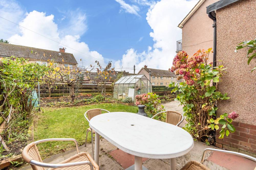 To the front of the property lies a low-maintenance private garden mostly laid to lawn with an entrance path. The large private rear garden benefits from a sizeable patio, well-kept lawn, flower bedding, fruit trees and a sunny South-West facing aspect. For the car owner, there is a single driveway for up to two cars.