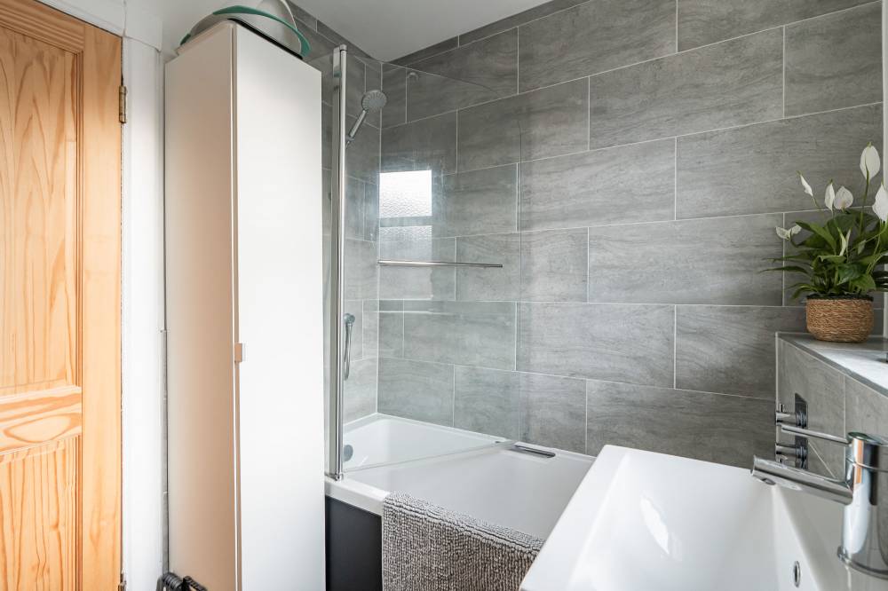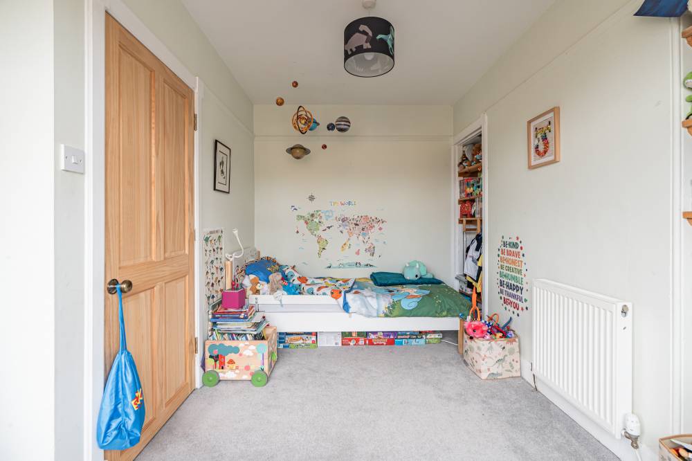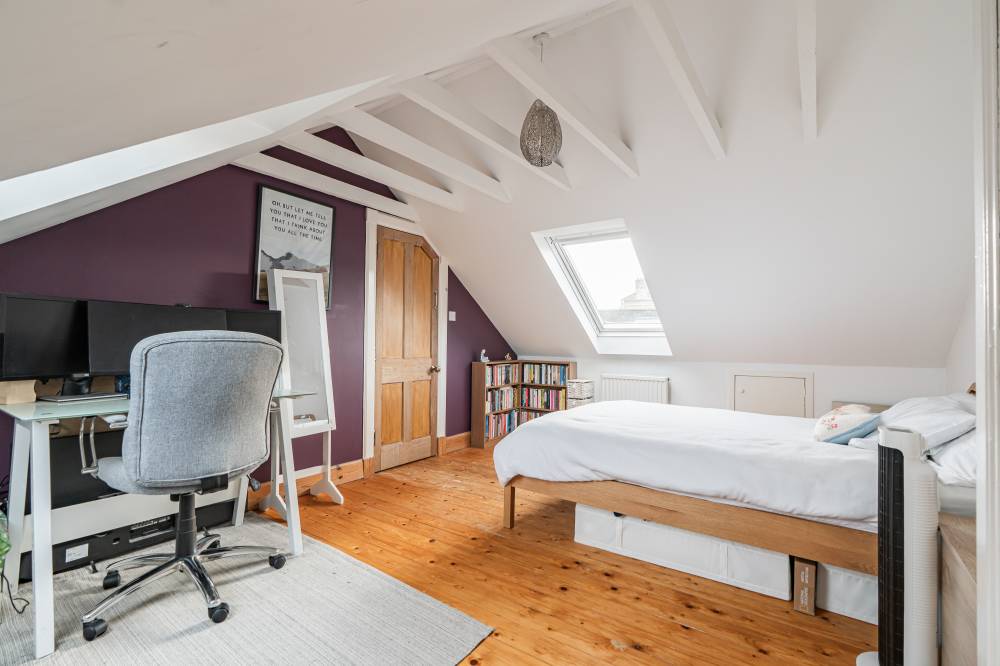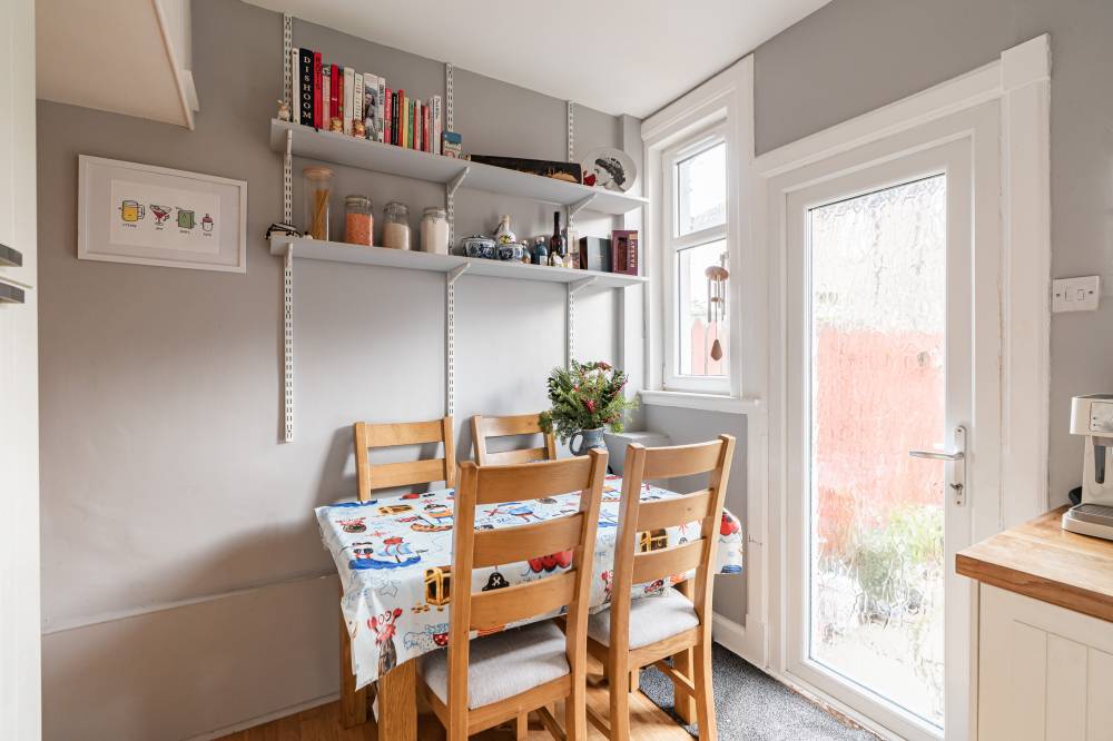 The ground floor comprises a bright and airy lounge with a bay window and feature fireplace, and a dining kitchen with a range of wall and base units with wooden worktops and tiled splashbacks, understairs storage cupboard plumbed for a washing machine, and a door to the rear garden. Moving to the first floor you will find two double bedrooms, one with a bay window and storage cupboard, and a contemporary bathroom with a white suite, heated towel rail and shower over the bath. Completing the accommodation on the second floor is the principal bedroom with velux windows and eaves storage. The property also benefits from gas central heating and double glazing.
