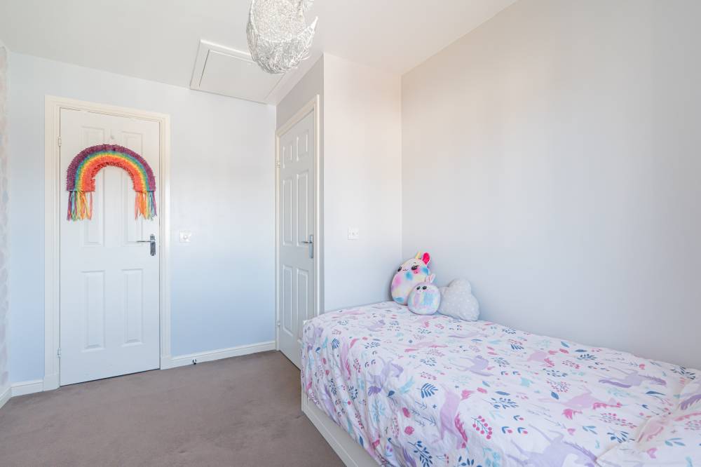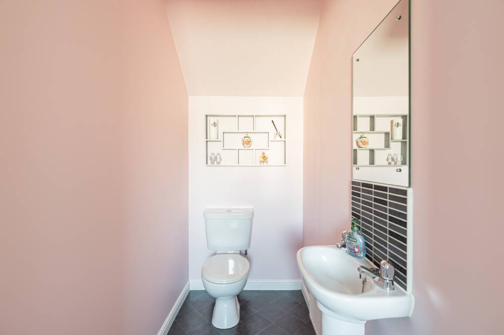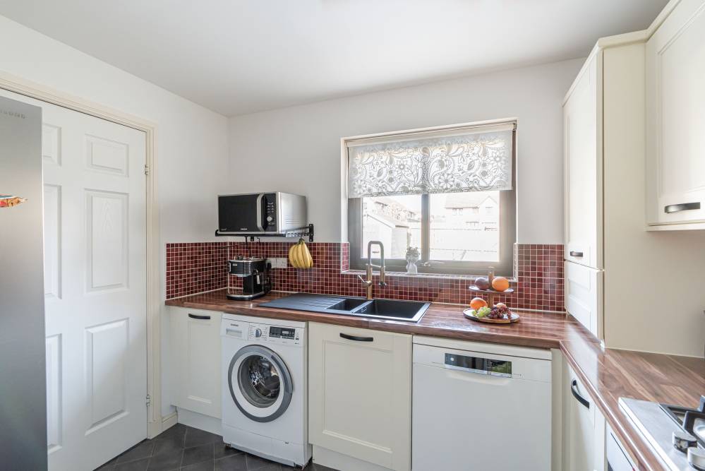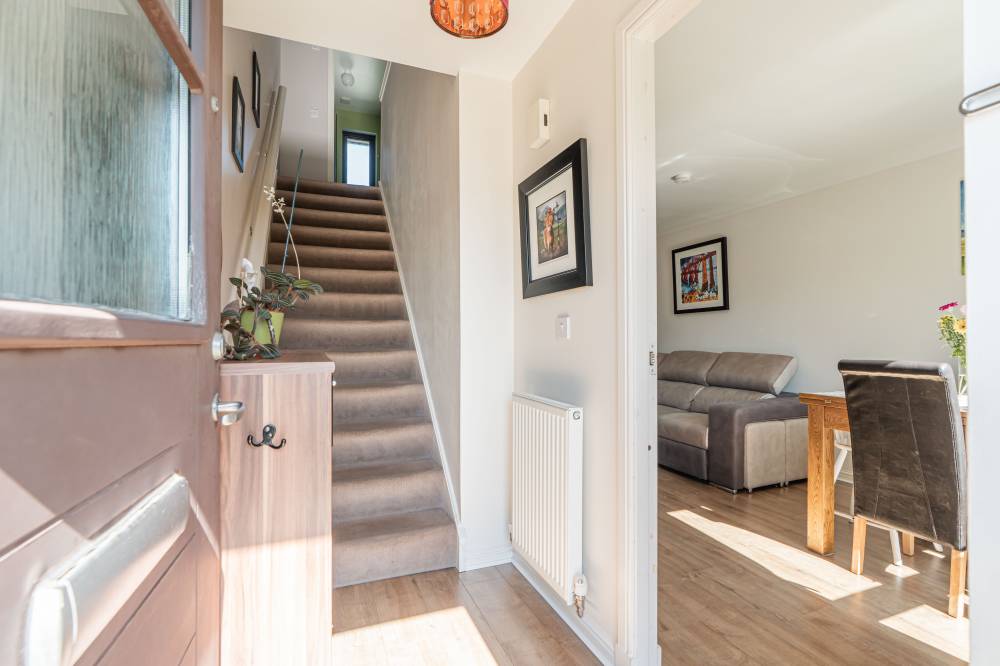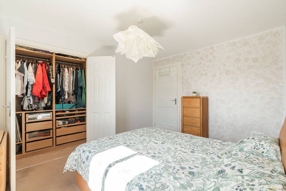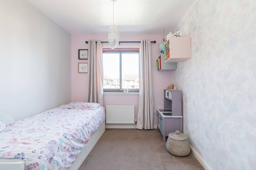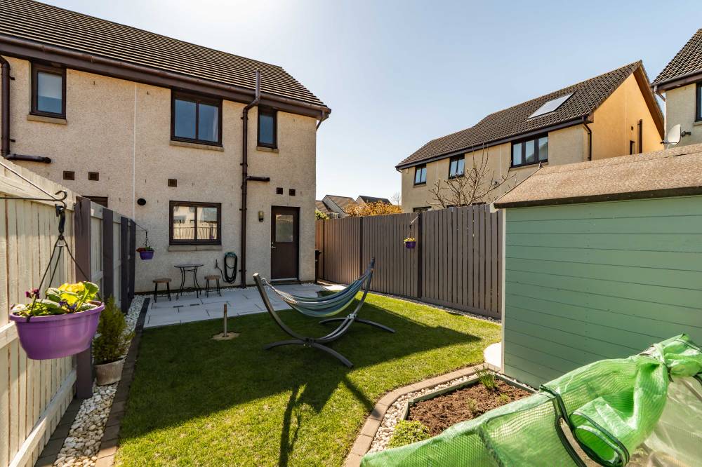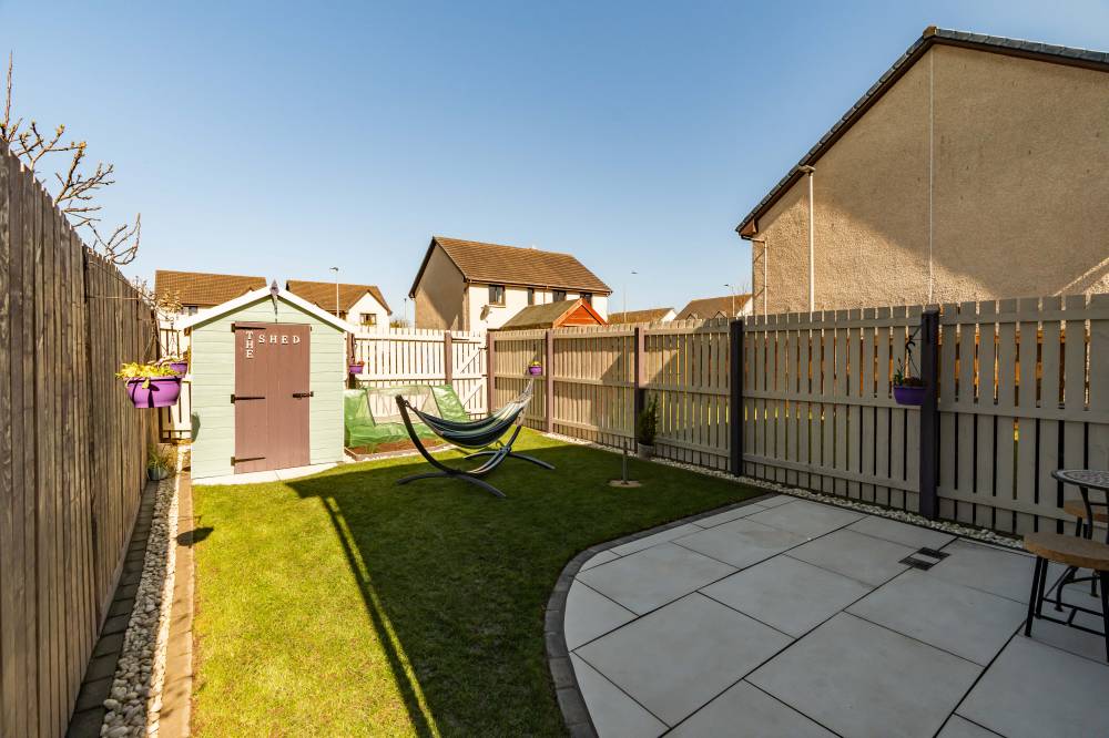 A particular feature of this home is the beautifully landscaped and enclosed rear garden which has lawn and patio areas and a timber storage shed, ideal for bikes, garden equipment and furniture. A gate to the rear gives direct access to an allocated parking space, and there is a secure side return giving external access to the front of the property. The house is set back from the street by a generous front garden area which is laid to lawn and bordered by a Copper Beech hedge. Pathways lead to the front door and side gate. Further communal garden ground is throughout the development with wide lawns and children’s play area. Approx £44.57 payable to Speirs Gumley Factors every 3 months and a fee to Scottish Woodlands of approx. £159.43 annually for maintenance of common areas.