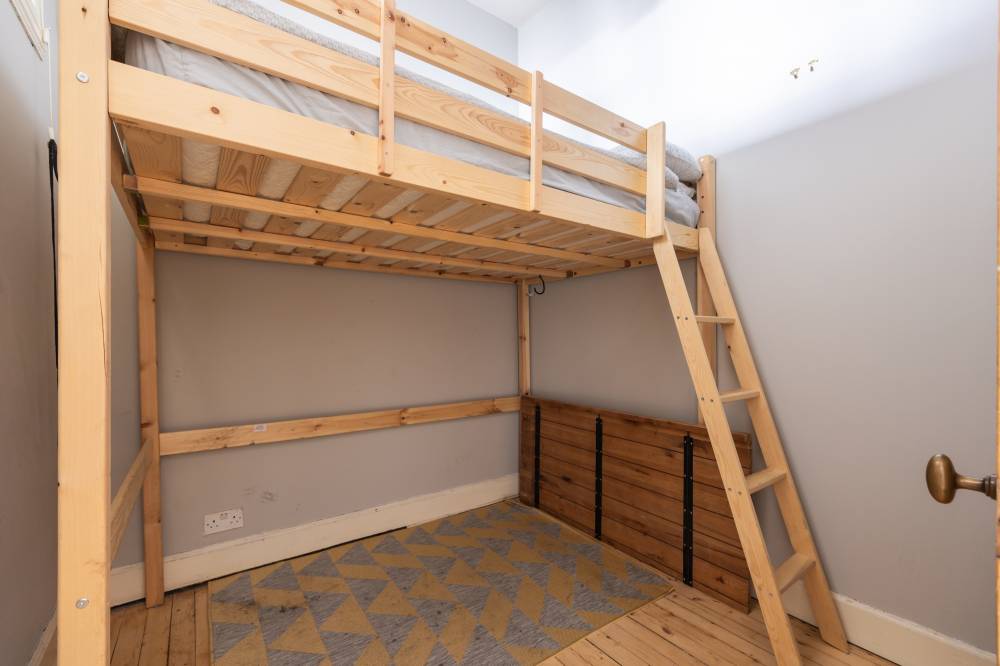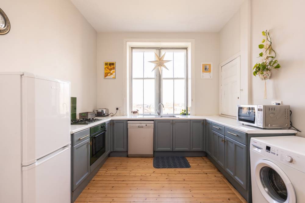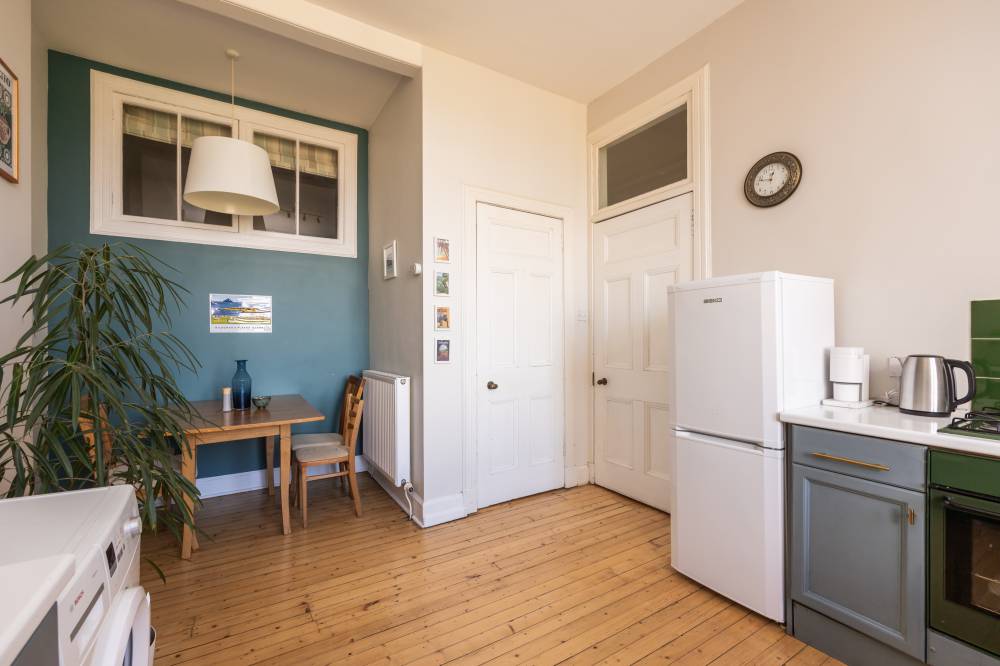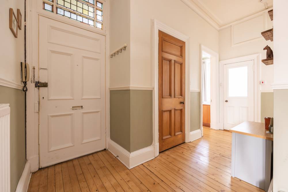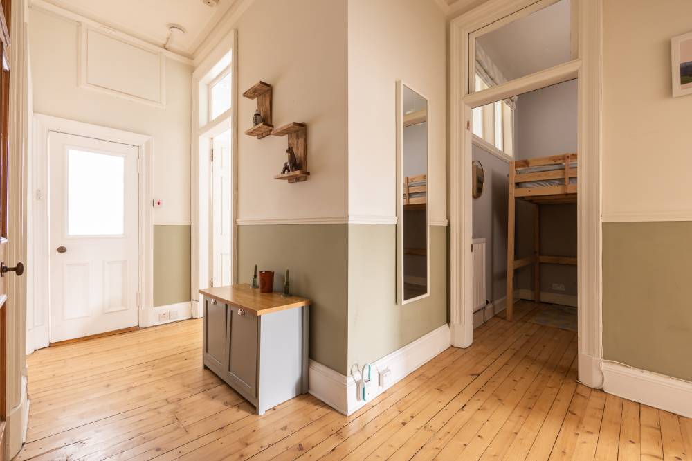 The accommodation briefly comprises a secure entry system, welcoming entrance hallway featuring original wooden flooring that flows through most of the property. The bright and airy reception room is enhanced by elegant cornicing and an attractive feature fireplace. The spacious dining kitchen enjoys lovely open views and includes a useful pantry. There is a well-proportioned double bedroom, along with a good-sized box room complete with a mezzanine bed, offering flexible use. A contemporary bathroom is fitted with a three-piece suite and an electric shower over the bath. Further benefits include gas central heating and secondary glazing.