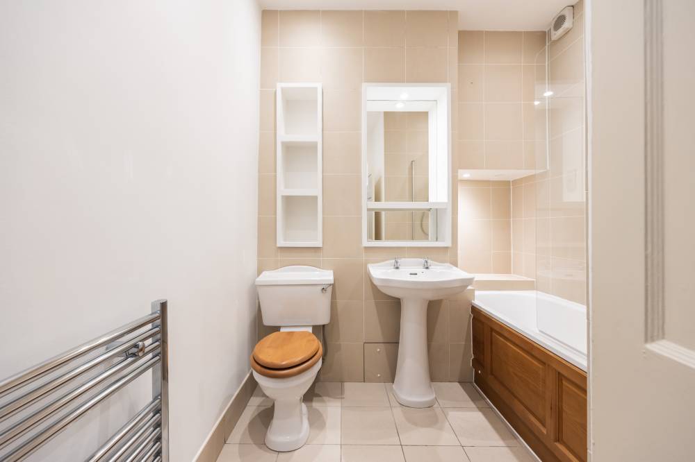 To the rear of the building is a well-kept communal garden which has been laid to lawn, peppered with a variety of shrubs and plants. The garden is fully enclosed and features a dramatic stone wall backdrop, affording the space an air of character.