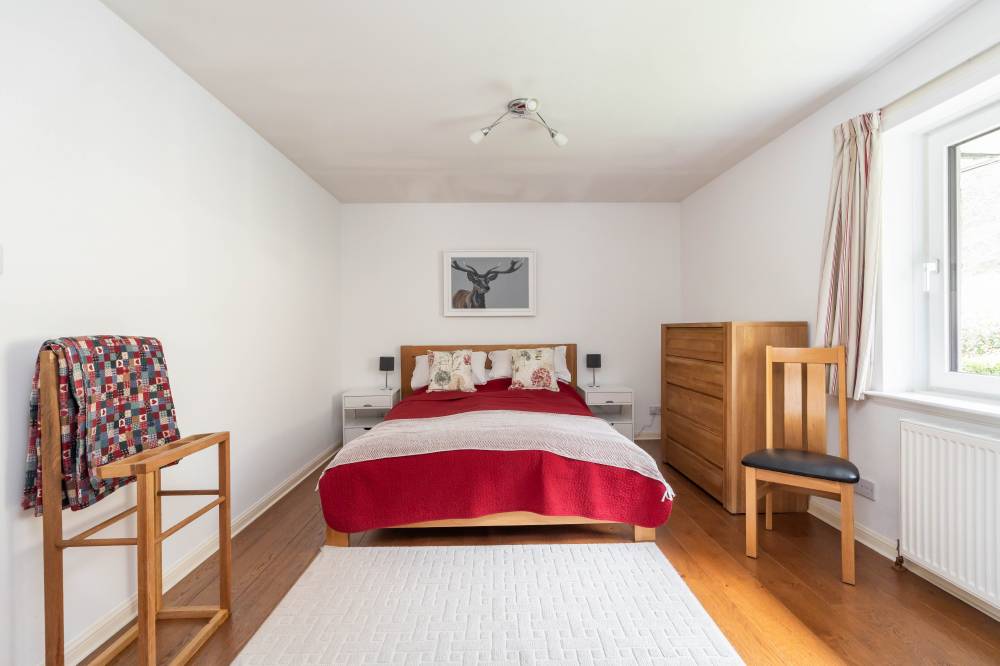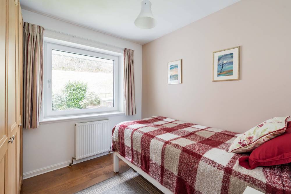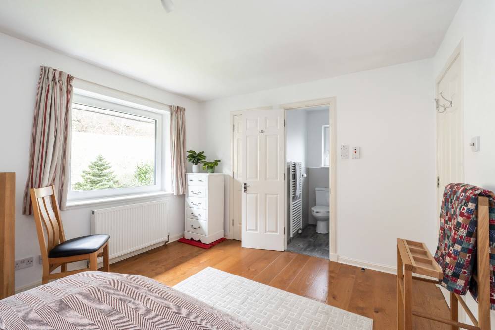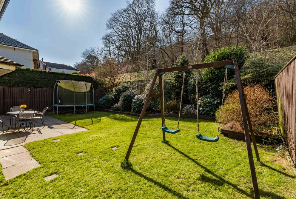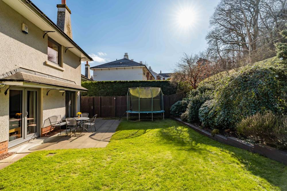 To the front of the house is a partially enclosed lawned garden, bordered by mature hedgerow, together with EV charging point, monobloc driveway and single garage to provide excellent off-street parking. To the rear of the property is a fully enclosed garden which has been laid primarily to lawn with well stocked shrub and small tree beds. Enjoying a sunny southerly facing aspect the gardens exude a wonderfully tranquil feel, the garden backs on to picturesque Corstorphine Hill and spectacular mature woodland.