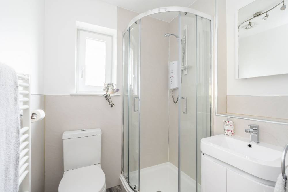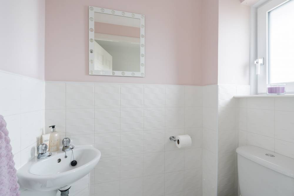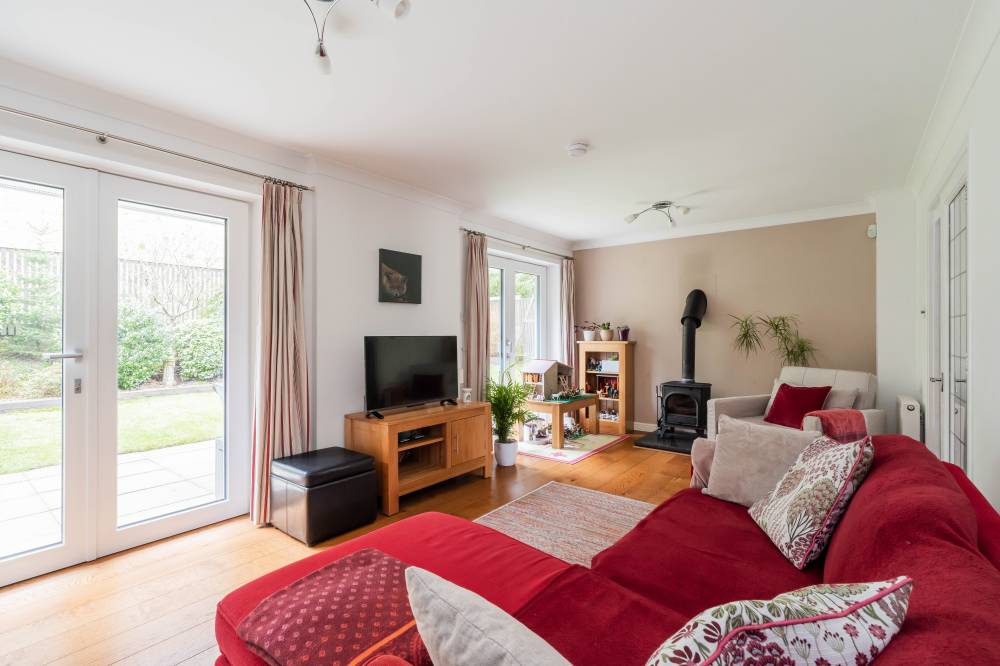 The accommodation briefly comprises: entrance hallway with stair to the upper level, convenient downstairs WC and built-in storage cupboard, spacious south facing reception room with attractive flooring, wood burning stove and two doors opening directly out to the charming rear garden, bay fronted dining kitchen with tiling to floor and a variety of modern base and wall mounted units, complete with coordinated worktops, a selection of built-in appliances, and ample space for a dining table and chairs, utility room, upper hallway, generously proportioned principal bedroom which is located on its own level and features a walk-in wardrobe and en-suite shower room, four further double bedrooms, and tiled family bathroom with counter sunk basin, WC and bath with shower.