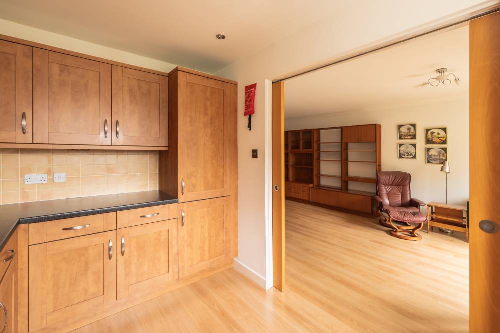 Set within a well-maintained block of just three flats, this is the only ground floor property, accessed via a shared entrance with a secure entryphone system. The front door opens into an exceptionally spacious hallway, complete with three generous storage cupboards. To the rear, the impressive open-plan sitting and dining room features French doors leading out to a private patio, enjoying a peaceful, leafy, south-facing outlook over the shared garden. The room comfortably accommodates both lounge and dining furniture, while sliding pocket doors provide the option to open up or separate the adjoining kitchen for flexible, sociable living. The well-proportioned kitchen is fitted with an extensive range of wall and base units, along with integrated appliances including a dishwasher, washer dryer, fridge freezer, oven, and hob. The principal bedroom is particularly spacious, benefiting from a dual corner aspect, built-in wardrobes, and an en-suite shower room. A second generously sized double bedroom also features built-in storage, while a third large single bedroom offers excellent versatility as a bedroom, home office, or study. The accommodation is completed by a contemporary family bathroom, fitted with a white suite and an over-bath shower. Further benefits include gas central heating via a combi boiler and full double glazing throughout.