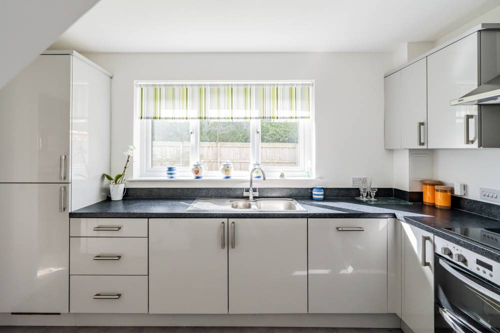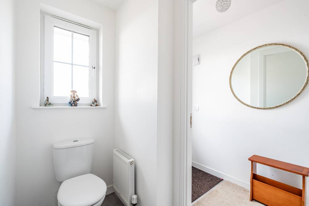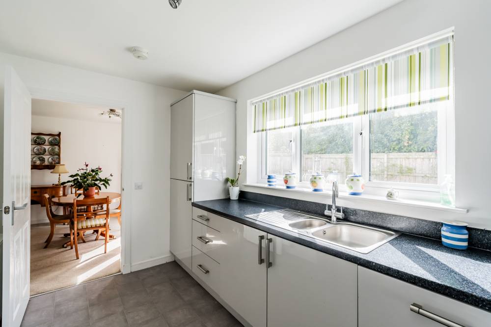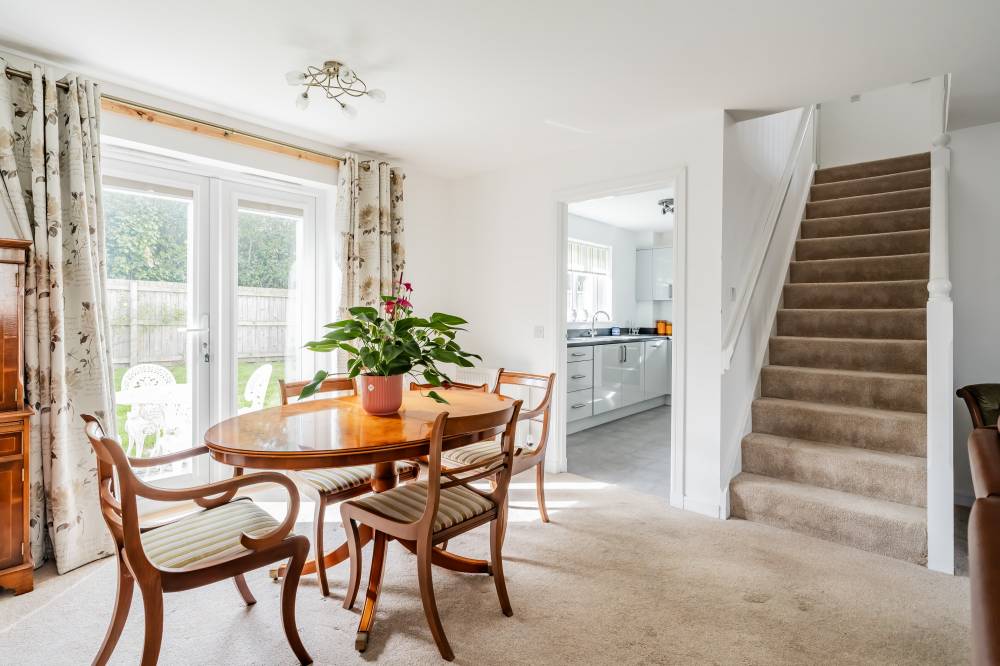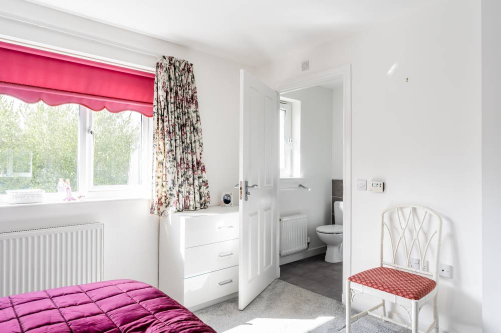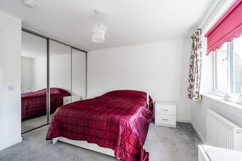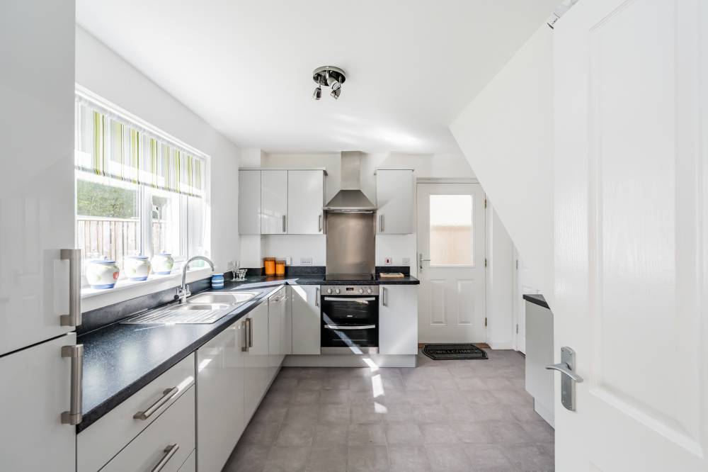 The well-presented accommodation is filled with natural light and opens with a welcoming hallway and guest WC apartment. A spacious dual aspect reception and dining room features French doors to the rear garden, while the modern integrated kitchen includes a large walk-in pantry and access to the side garden. A carpeted staircase leads to the upper floor, where the principal bedroom enjoys built-in wardrobes and an en suite shower room. A further double bedroom with fitted wardrobes, a generous single bedroom and a family bathroom with white three piece suite complete the layout. The property is further enhanced by gas central heating with combi boiler and double glazing.