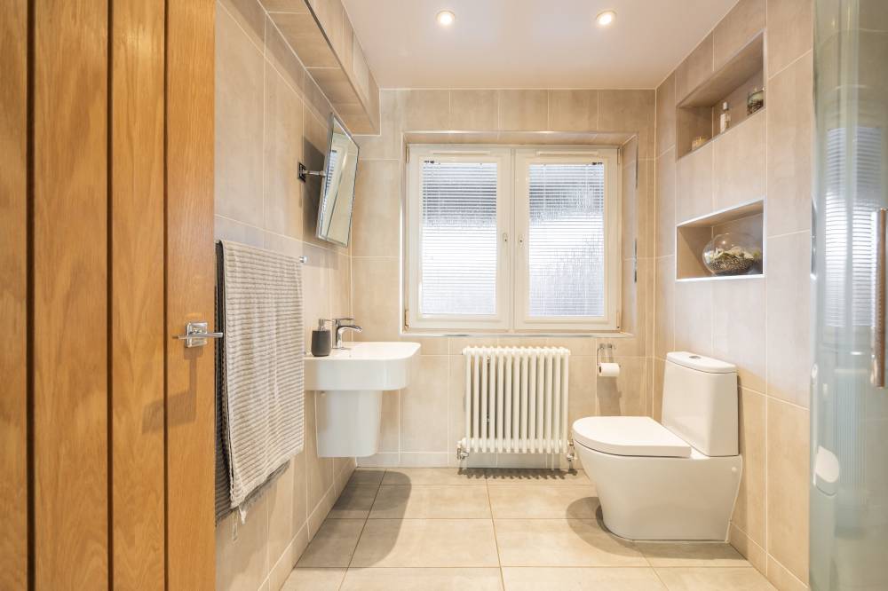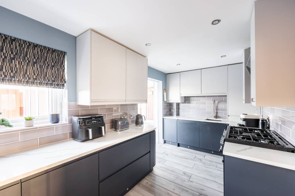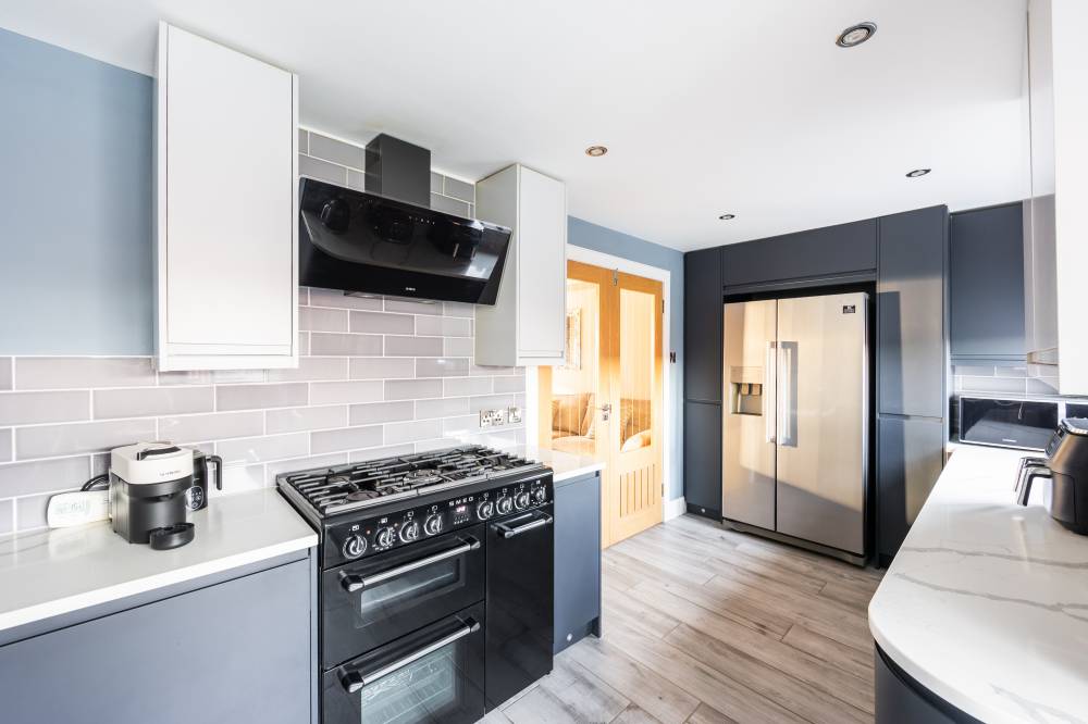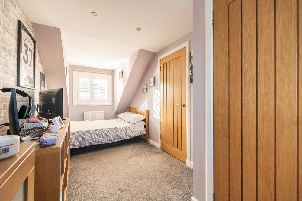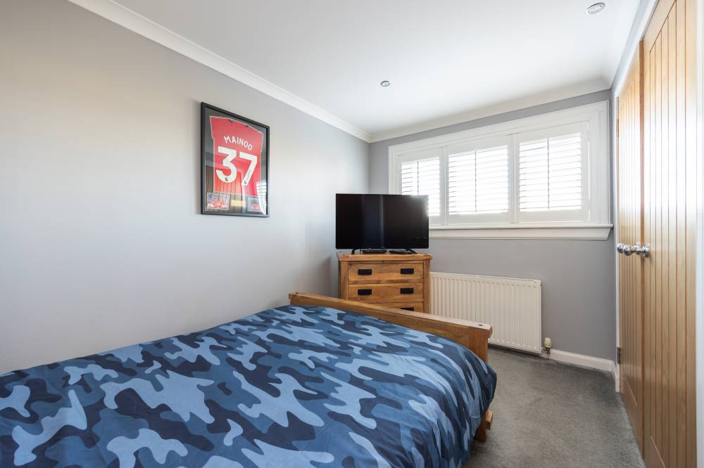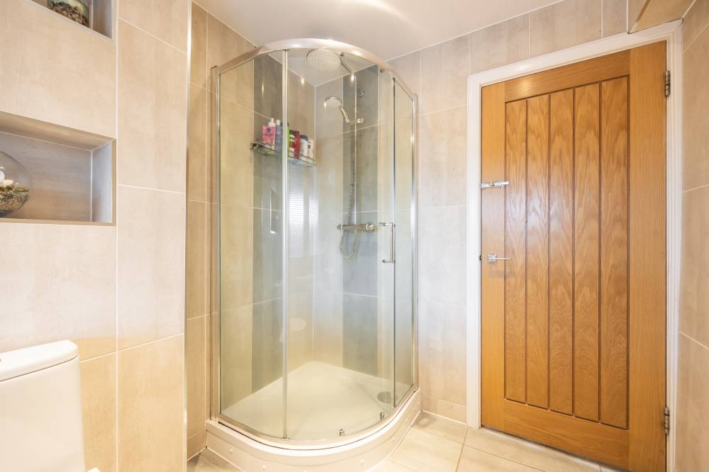 In true move in condition, the property is laid out over two levels and you enter a welcoming entrance vestibule and immediately to your left is the bright and airy lounge. Glazed doors lead through to the stylish fitted kitchen which has a range of wall and base units with co-ordinated worktops and tiled splashbacks, and this leads onto the sunroom with a breakfast bar island and a door to the garden, together providing a perfect space for cooking and entertaining. Completing the accommodation on this level is bedroom four which is currently used as a home office, and an en-suite shower room with a white suite and corner cubicle with overhead rainfall shower.