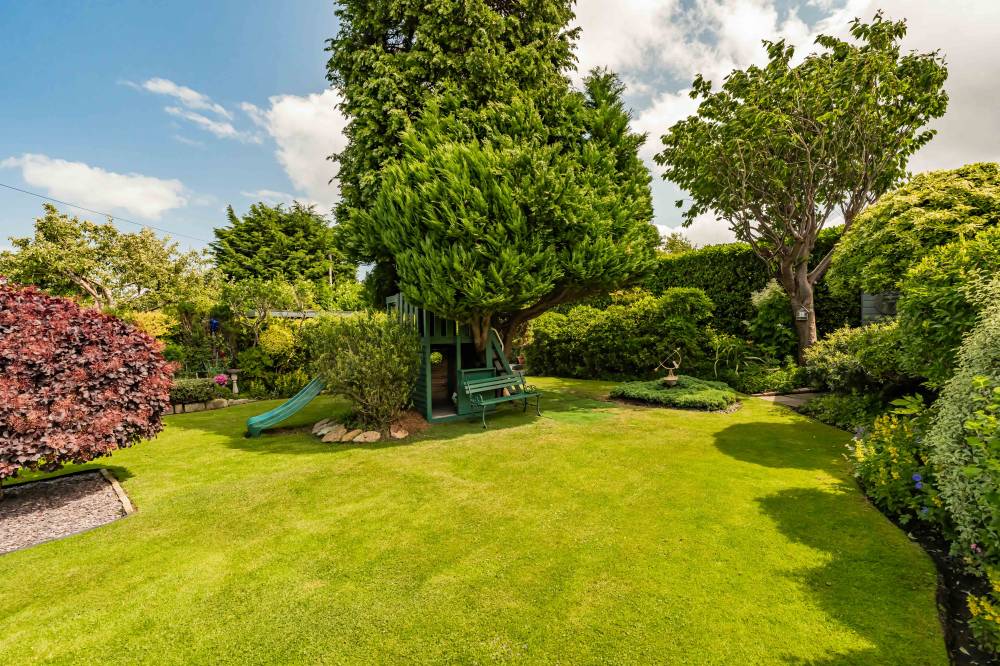 To the front of the house a large monobloc driveway, leads to a single garage and is bordered by a mature hedgerow, offering a good degree of privacy. To the rear is an idyllic mature garden which enjoys a south facing aspect and has been lovingly tended by the existing owner, with manicured lawn, a variety of flowering bushes, shrubs and delightful mature trees. A paved seating area provides the perfect spot for relaxing or entertaining in the warmer months and there is a child’s play set cleverly integrated into a large evergreen tree.