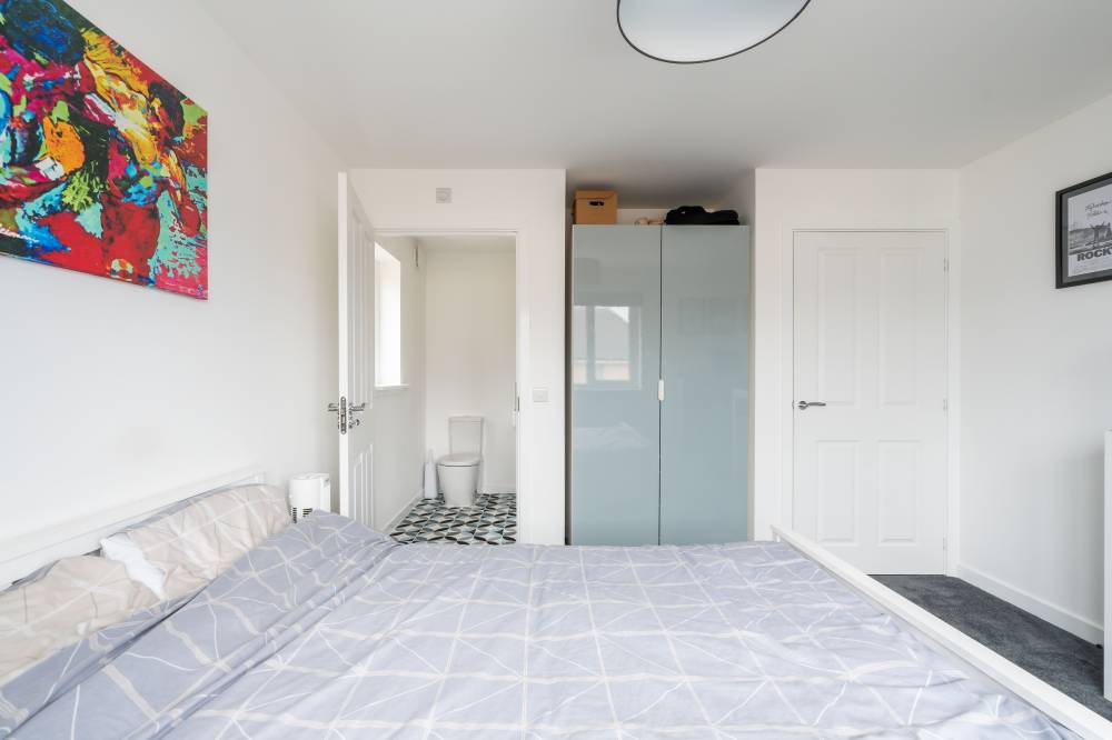 Moving upstairs there is a naturally light landing, the principal bedroom with built in wardrobes and en-suite shower room, bedroom two also with en-suite shower room, two further double bedrooms, and a family bathroom with a white suite. The attic which has power and light is floored and is accessed via a Ramsay ladder. The property further benefits from gas central heating (with separate controls for each level), double glazing, and solar panels.