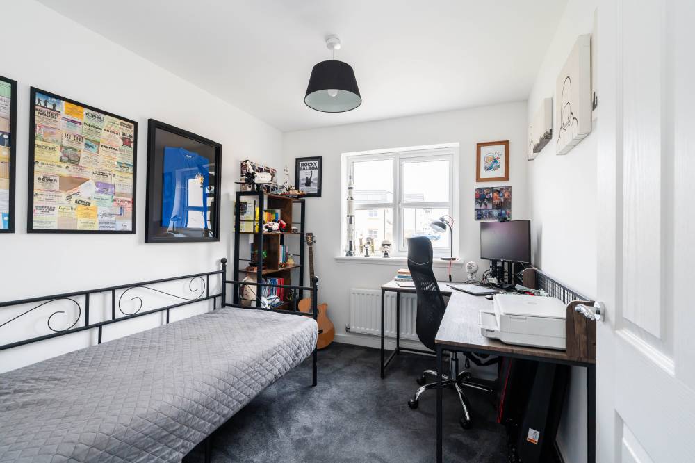 A neat front garden with lawn welcomes you to the property and to the rear is a fully enclosed, south facing landscaped garden with planters and an area of lawn, offering an ideal place for dining in the warmer months and a safe space for children and pets to play. There is a garage with up and over door, power and light, and a double driveway provides off street parking.