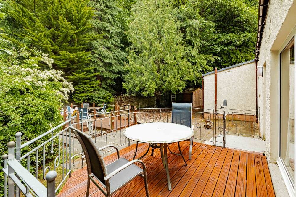 A real feature of this home is the extensive gardens which wrap around the property. To the front there is a patio area with a neat lawn bordered by hedges for privacy, which continues right round the side of the house to the rear where you will find a tree lined walled garden which backs onto Craiglockhart Hill. With various areas of decking and patio it offers the perfect place to dine and relax in the warmer months. There is a double garage with up and over door, power and light, and a long driveway provides off street parking for several cars.