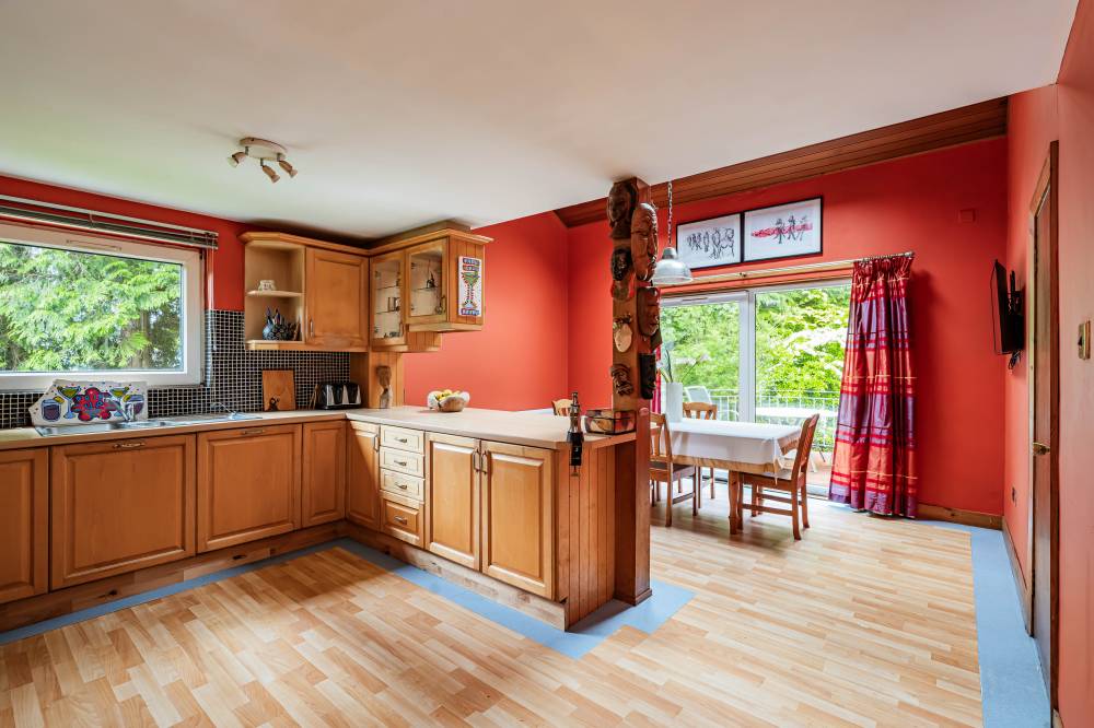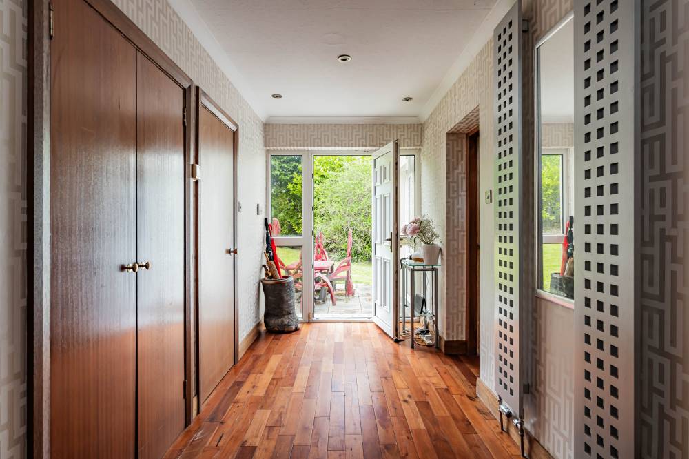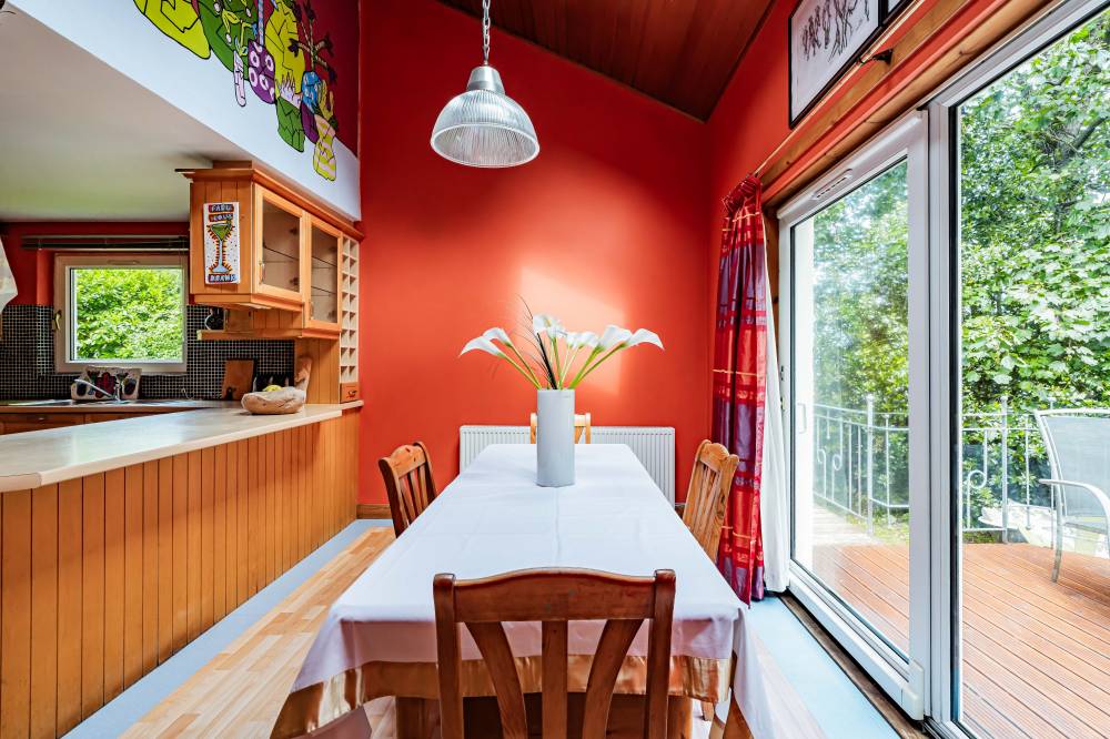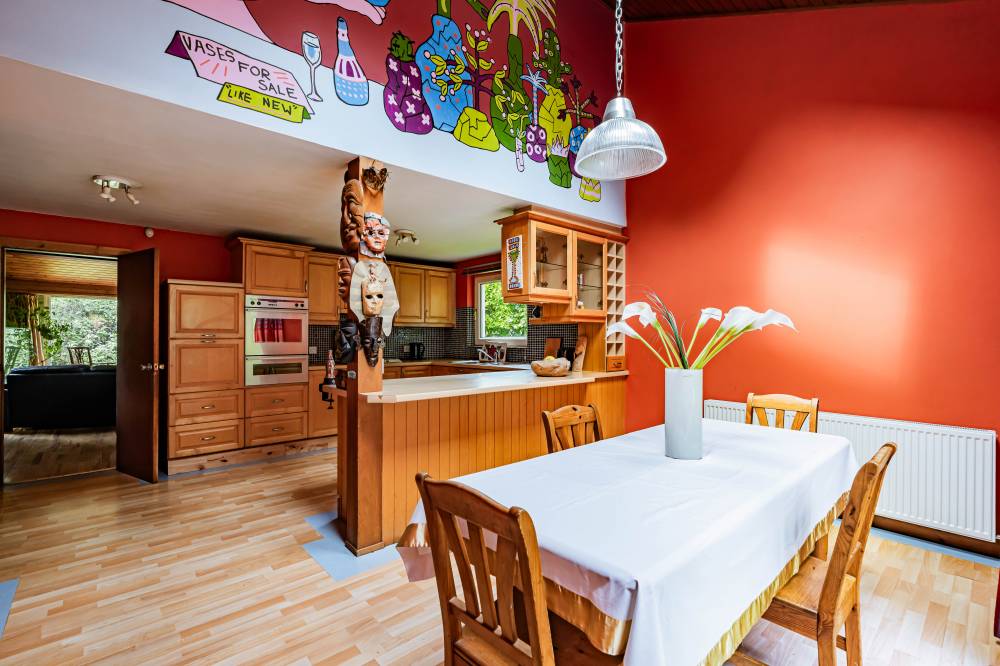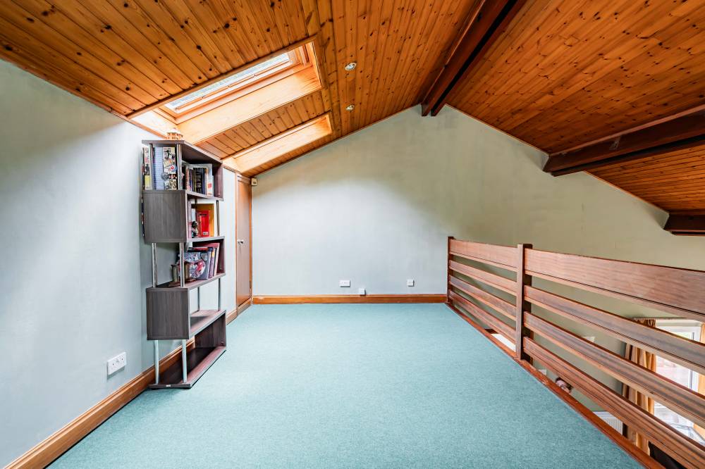 You enter a welcoming entrance hallway which has three storage cupboards and a handy WC, and to your left is a bright and airy lounge which has a triple aspect, allowing plenty of natural light to flood the room. There is a wood burning stove for cosy evenings, and for warmer days a sliding patio door opens to allow the room to flow into the garden. Stairs lead to a mezzanine level which could lend itself to a variety of uses including a home office, study or hobby area. A door from the lounge (and another from the hall) leads into the generous dining kitchen which has a range of wall and base units with co-ordinated worktops and tiled splashbacks, space for a large table and chairs, and a sliding door to a raised decked area, making this the ideal space for cooking and entertaining with family and friends. Off the kitchen is a useful utility room which also gives access to the rear. There is a good size principal bedroom with built in wardrobes, and doors in the middle of these open to a fully tiled en-suite shower room with a white suite including a bidet, and a heated towel rail. There are three further double bedrooms all with built in storage areas, and all bedrooms benefit from full length windows to enhance the natural light. Completing the accommodation is a fully tiled family bathroom with a white suite, heated towel rail, and shower over the bath. In addition to this there is a large partially floored attic with light which can be accessed from the mezzanine level, and the property further benefits from gas central heating (new boiler and heating system completed in 2025) and double glazing.