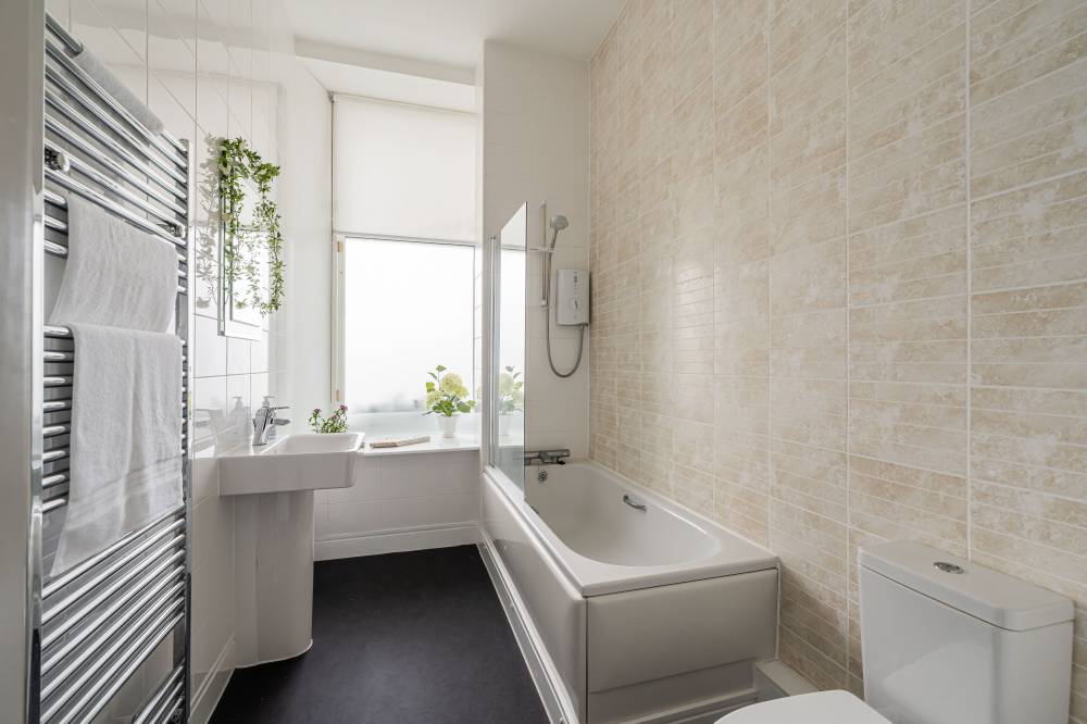 There is a well presented communal entrance hall where you take the stairs or lift to the first floor. As you enter the property, you’ll be greeted by the spacious hallway, with video entry-phone system and two storage cupboards, one of which is plumbed for the washer/dryer. There is a beautifully proportioned bright and airy triple aspect living room, with a south-facing box bay window making it exceptionally bright and warm. The open plan kitchen is a real highlight of the home and has a range of sleek white wall and base units with co-ordinated worktops, offering the perfect space for both relaxing and entertaining. The generous, well proportioned principal bedroom benefits from a large built-in double wardrobe and a further storage cupboard. The spacious en-suite bathroom has a double size shower cubicle with overhead rainfall shower and hand held attachment and a chrome heated towel rail. The second double bedroom is bright and overlooks the balustrade frontage. Completing the accommodation is the spacious fully tiled main bathroom also with a white suite, heated towel rail and an electric shower over the bath. The property also benefits from gas central heating and double glazing helping to ensure warmth and buffer any traffic noise.
