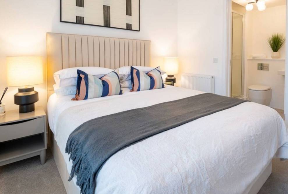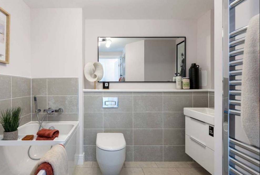 Three-zone living makes this the perfect ground floor apartment for young families, couples or downsizers. The living/dining area enjoys generous proportions, with double glass doors allowing natural light to flood in. In warmer months, invite the outside in or dine out in style on your private balcony. The kitchen with the latest Siemens integrated appliances and wraparound peninsula allows just enough privacy while ensuring you’re still part of any family activity or special occasion. Both bedrooms include fitted wardrobes, providing elegant lines within this personal space. The larger of the two offers the ultimate pampering escape with an en-suite and Juliet balcony opening to the world outside. Wander past the family bathroom and notice the Laufen sanitaryware. Imagine a luxurious evening lying back and relaxing in style. This stylish apartment also boasts excellent storage throughout for extra practicality and secure entry.
