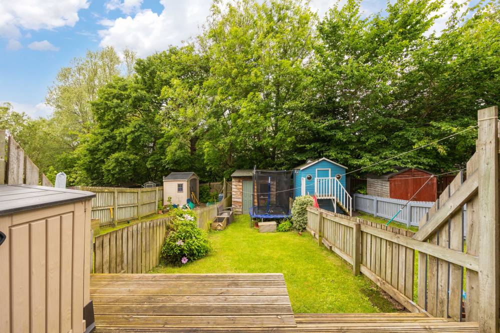 To the rear is a full enclosed garden which has an area of lawn and a decking, offering a great space for outdoor dining in the warmer months and a safe place for children and pets to play. There is an allocated parking space to the front and on street parking is available.