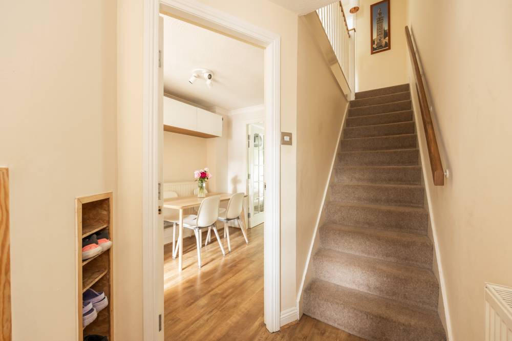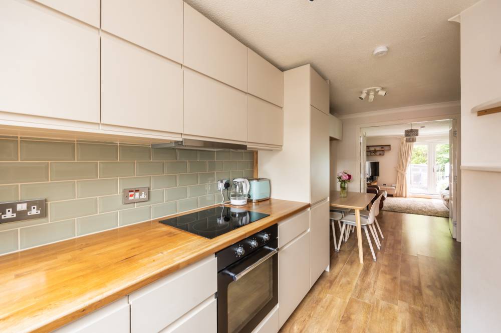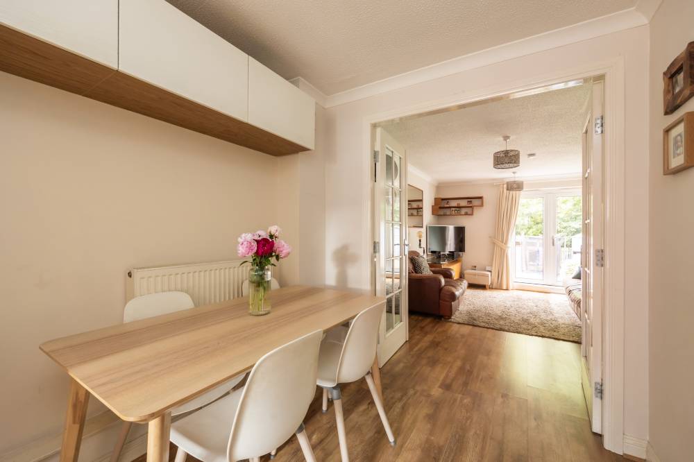 The spacious accommodation is laid out over three levels, with downstairs briefly comprising of an entrance vestibule, hallway with built in storage, a bright lounge with direct access to the rear garden, double glazed doors leading to the dining area and then onto the kitchen which has a range of cream wall and base units with co-ordinated worktops and subway style splashback tiling.