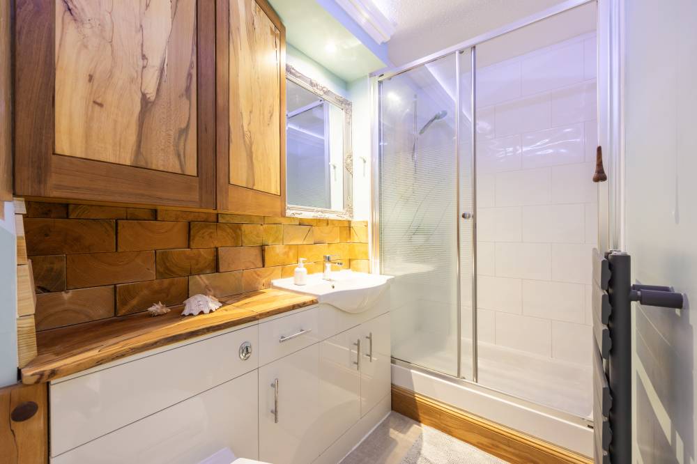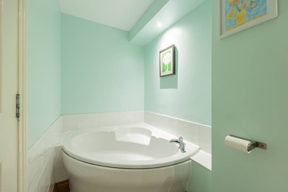 Moving to the first floor, there are 2 bedrooms, one with a built in wardobe, and a family bathroom with a shower cubicle and corner bath.
