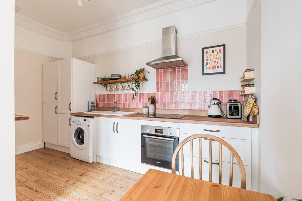 A welcoming entrance hallway sets the tone, offering a useful storage cupboard and leading naturally through the home. The bright open-plan lounge, kitchen, and dining area enjoys twin windows that flood the room with natural light, an Edinburgh Press for additional storage, and a delightful window seat with in-built storage providing the perfect spot to relax and enjoy the views. The charming kitchen zone features a range of integrated appliances, and partial tiling in splash areas. The generous double bedroom is enhanced by a half-panel feature wall and more of the lovely open views. Freestanding wardrobes are included, offering immediate practicality. The contemporary shower room completes the accommodation, finished to a high standard with partial tiling, rainfall shower, modern vanity unit, and a heated towel rail.