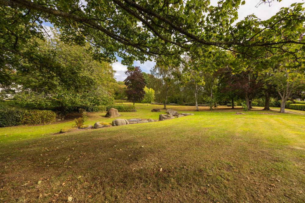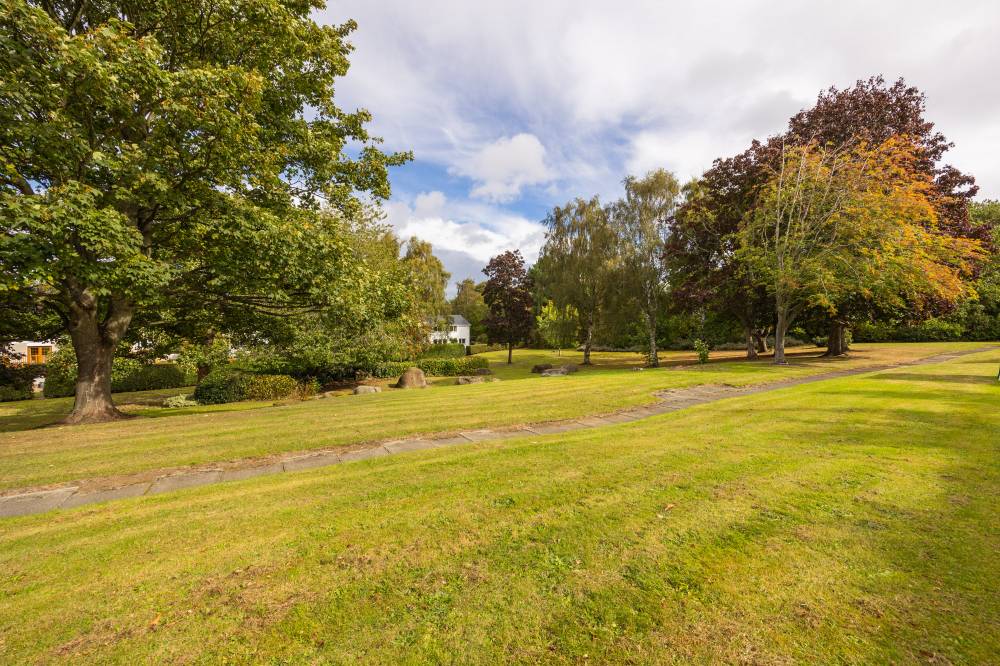 Externally, the rear garden is attractively presented with mature planting and leads via a gated entrance to a spacious, well-kept communal lawned area. The front of the property includes a neat lawn, a private driveway, and a detached double garage, providing excellent off-street parking and storage. Additionally, a private patio area, enclosed behind a secure front gate, offers a secluded outdoor retreat.