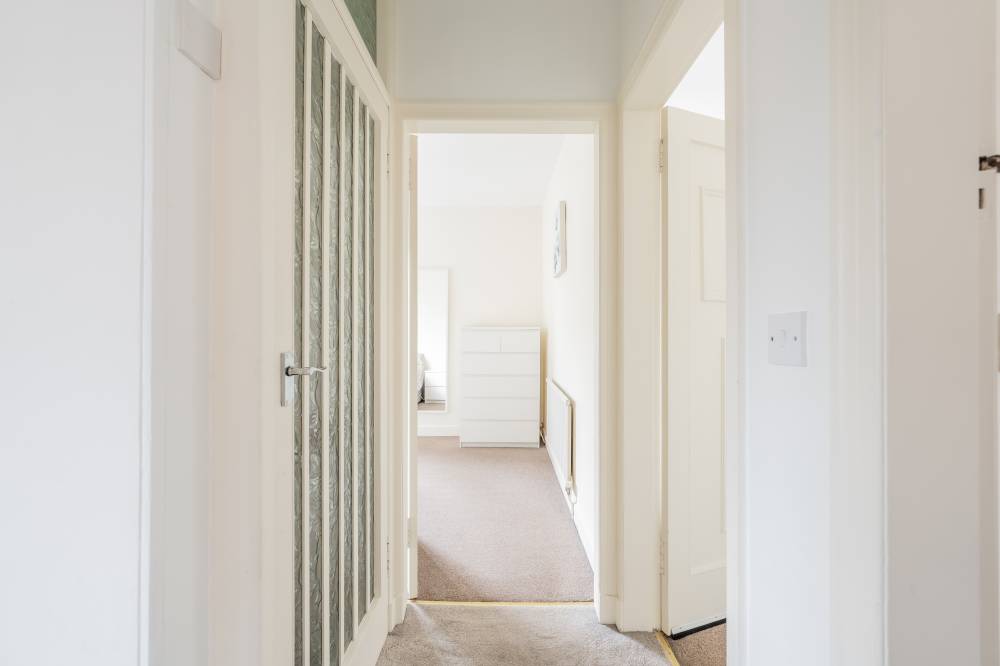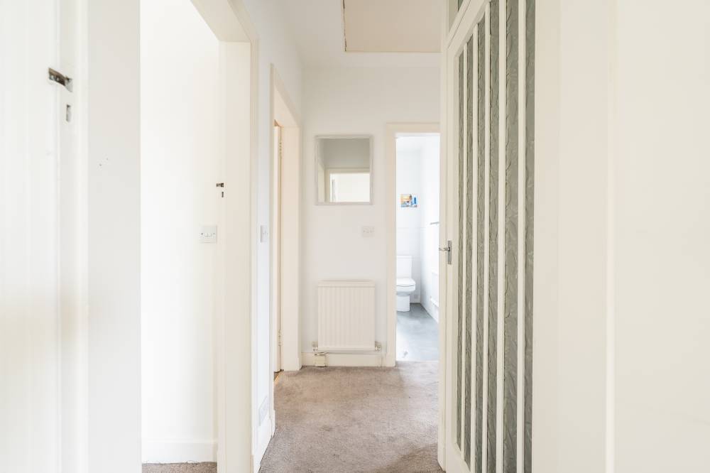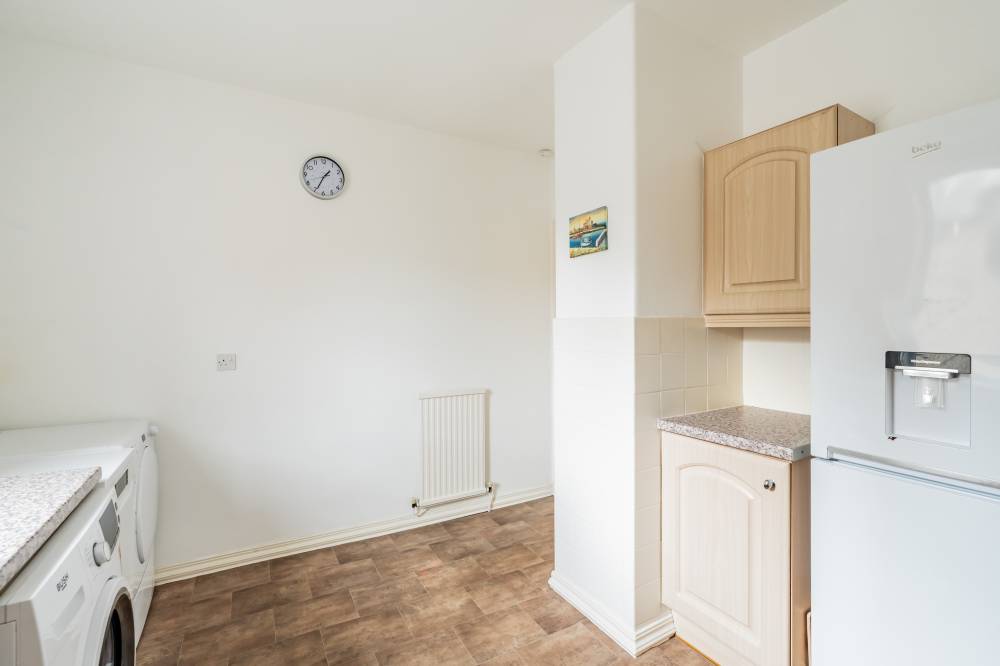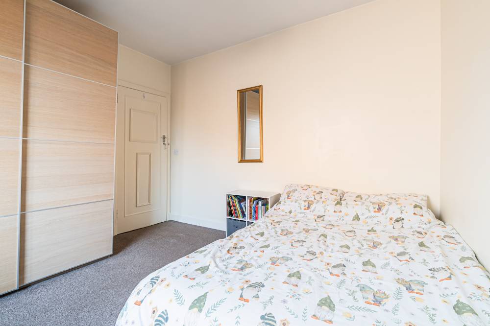 Accessed via its own private main door, this charming home begins with a generously sized porch, an ideal space for storing bicycles, outdoor gear, or additional items, providing both practicality and security. From here, an internal staircase leads up to the welcoming main hallway. The reception room is both bright and inviting, featuring a classic box bay window that floods the space with natural light and adds character. A convenient shelved recess provides attractive and functional storage, perfect for books, décor, or everyday essentials. The well-appointed fitted kitchen offers ample cabinetry and worktop space, creating a practical and efficient cooking environment. There is potential to personalise or modernise to suit individual taste, making it a versatile space for home chefs. Accommodation includes two generously proportioned double bedrooms, both comfortably carpeted to create a warm and cosy feel. The slightly larger of the two also benefits from integrated storage, helping to maintain a clutter-free environment. The bathroom is fitted with a clean and contemporary white three-piece suite, complete with a dual-headed thermostatic shower over the bath.