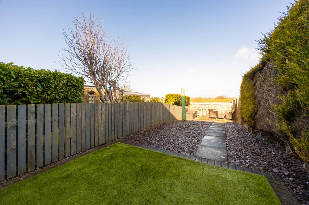 To the front of the house is a south facing lawned garden with chip beds and a paved pathway. To the rear is a generously sized, fully enclosed private garden which has been laid to low maintenance artificial grass, with slate beds and a paved seating space at the very top. The gardens back on to beautiful rolling countryside and offer a peaceful, open space to relax during the warmer months. A gate opens on to small lane which in turn leads to the single garage.