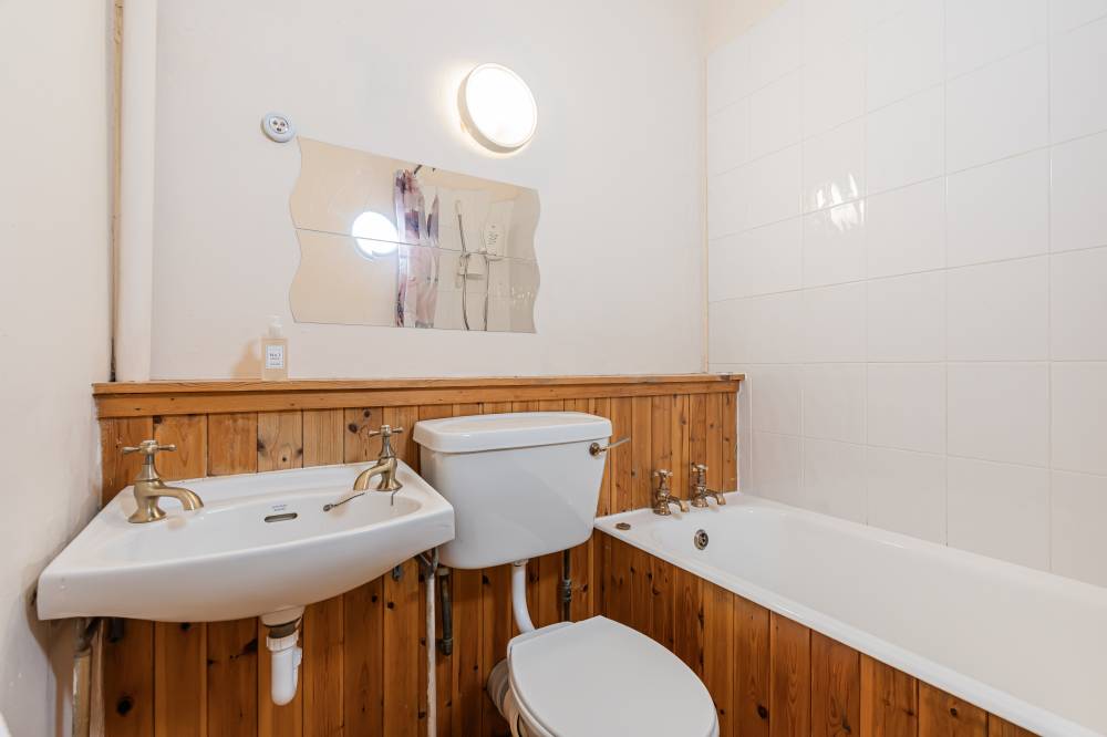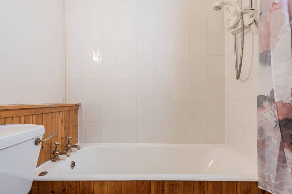 Internally, the home offers a warm and welcoming layout. The inviting entrance hallway provides access to all rooms and includes a useful tank cupboard with storage. The bright open-plan lounge/kitchen/diner is a delightful space, enhanced by garden views, window shutters, and a shelved Edinburgh press cupboard. The kitchen area features a breakfast bar, a range of integrated and freestanding white goods, partial splash tiling for easy maintenance, and a separate utility storage cupboard. The generously proportioned double bedroom is front-facing and boasts a charming feature mantlepiece along with stylish shutters, while the bathroom is fitted with a three-piece suite including shower over bath, complemented by partial tiling and a wooden panel surround.
