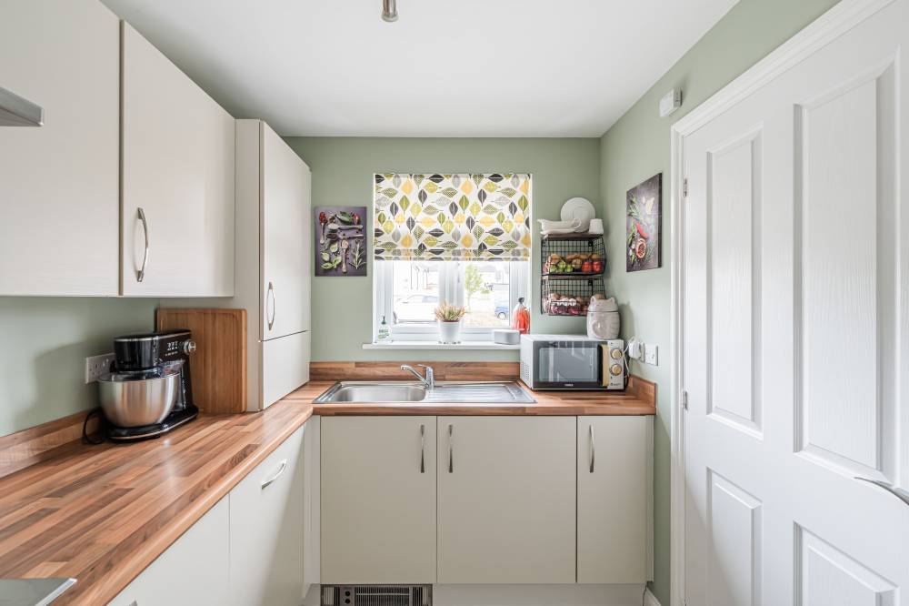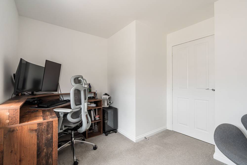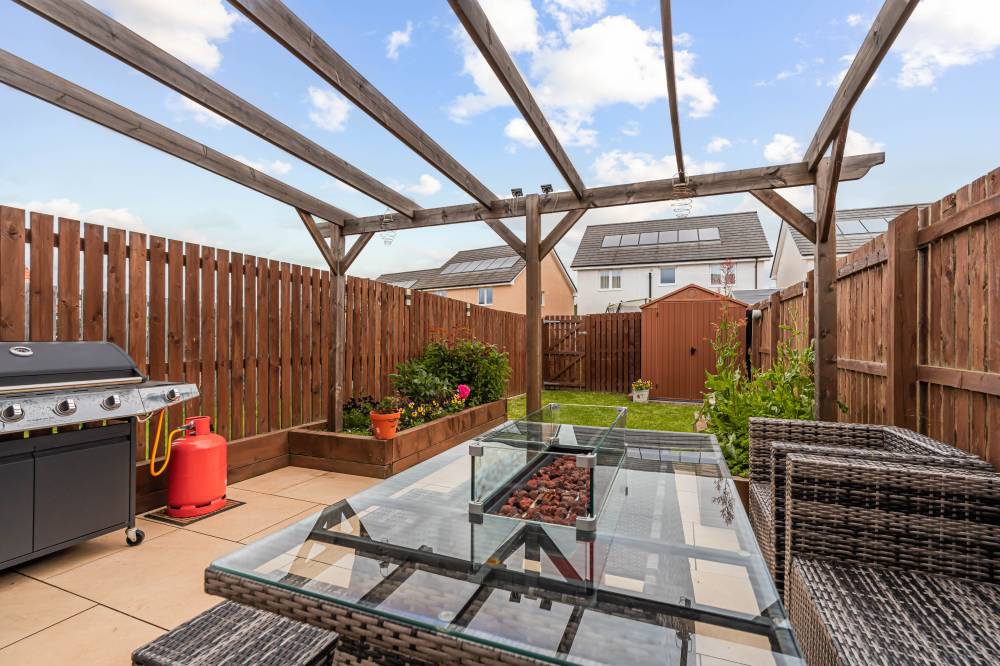Externally, the front garden is attractively presented with a paved path leading to the front door. A particular feature of this home is the carefully designed rear garden, this private outdoor space includes a patio, lawn, raised beds, a pergola, and a garden shed, creating a perfect setting for relaxation or entertaining. There is allocated parking to the front, along with ample visitor bays.