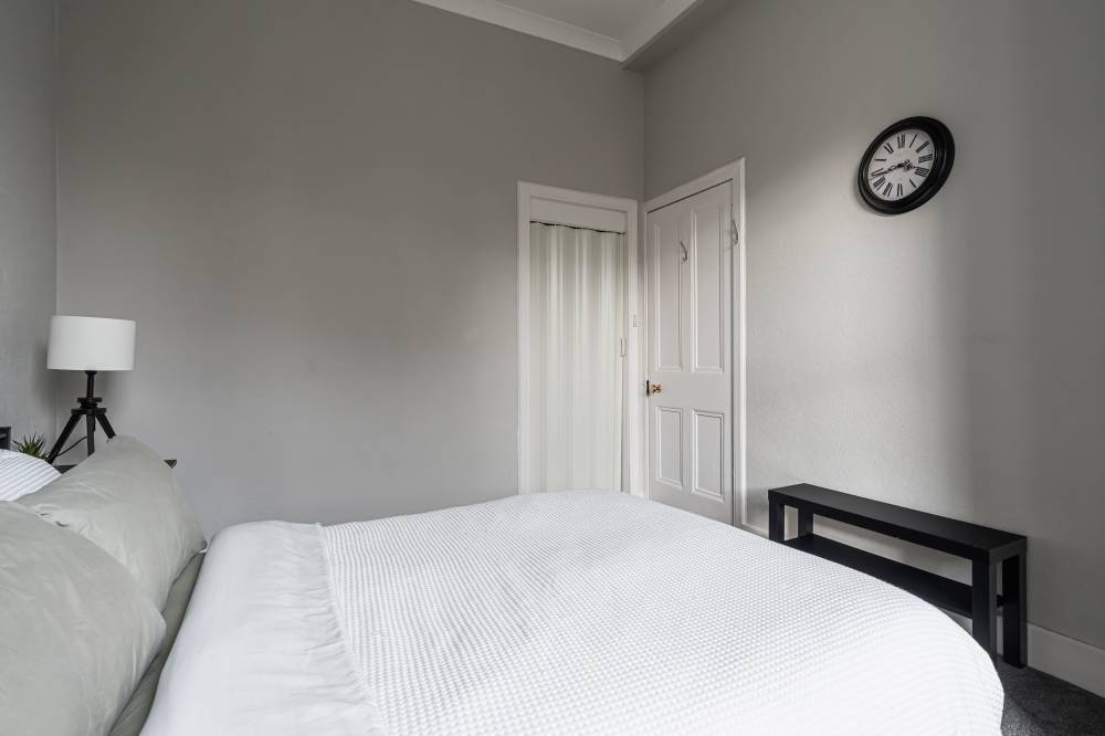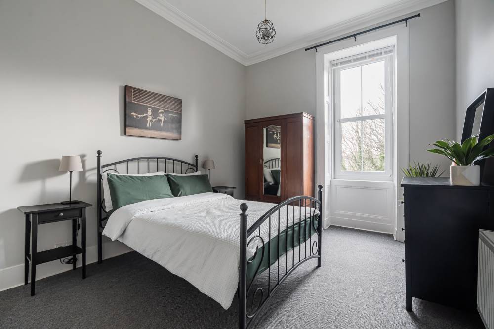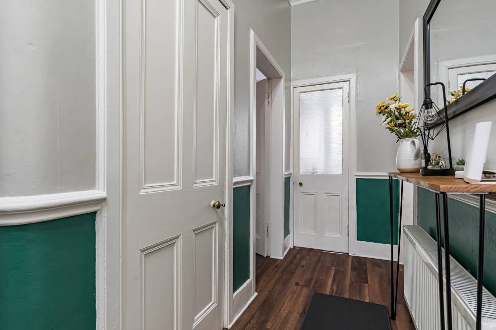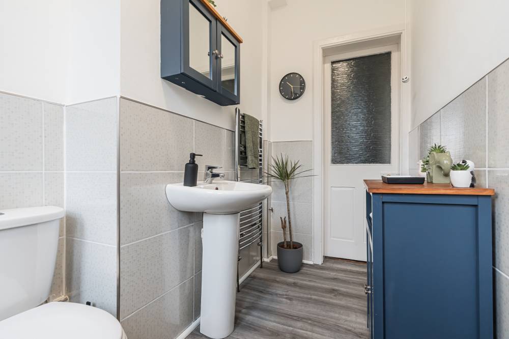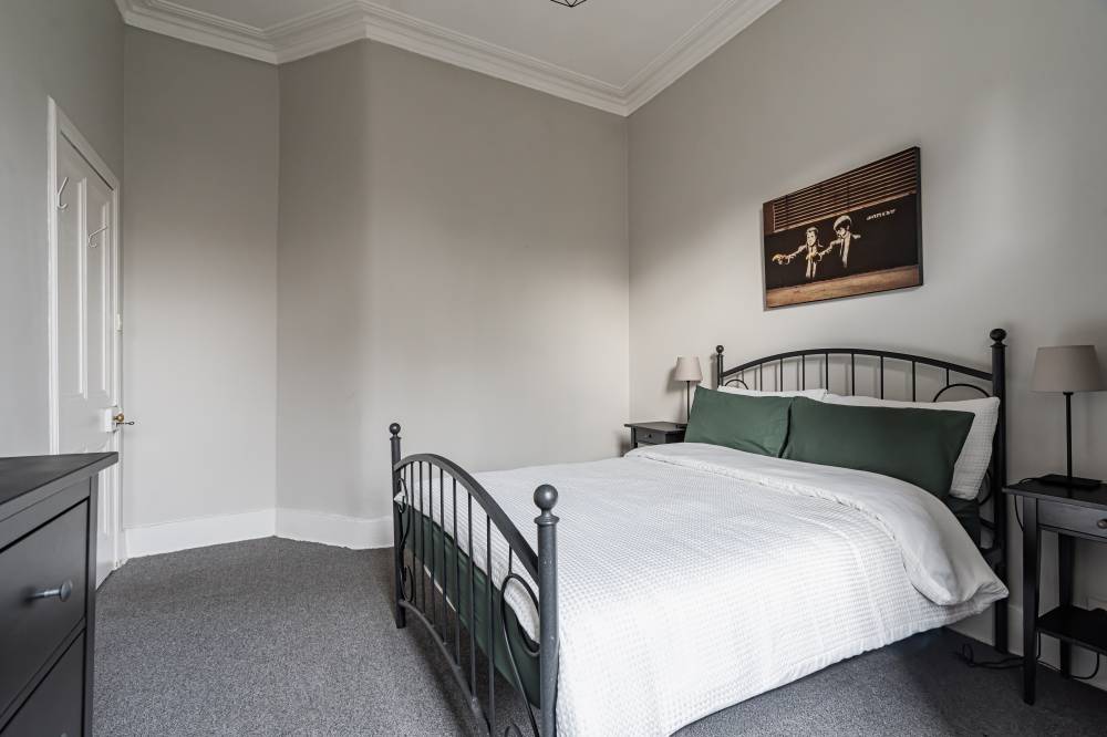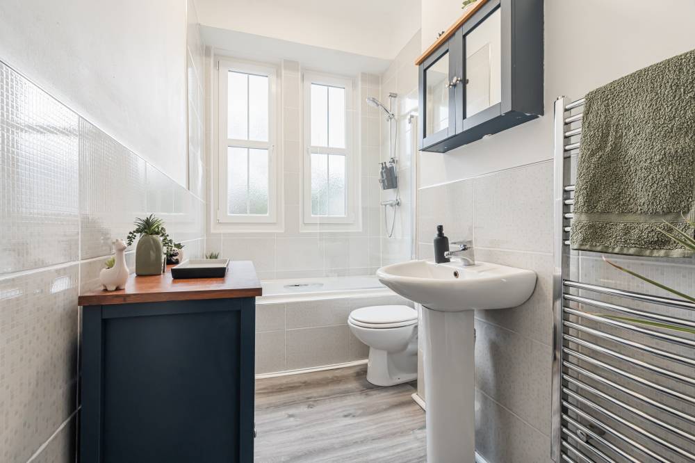 The accommodation which has been upgraded to a very high standard by the present owner, in brief comprises; secure entry system, welcoming entrance hallway with useful storage, light and airy twin windowed reception room with beautiful cornicing and electric fireplace, internal modern fitted kitchen with appliances, two well proportioned double bedrooms – one of them with walk-in wardrobe and contemporary bathroom with three-piece suite and shower over bath. Further benefits include gas central heating and slimline sash & case double glazed windows.