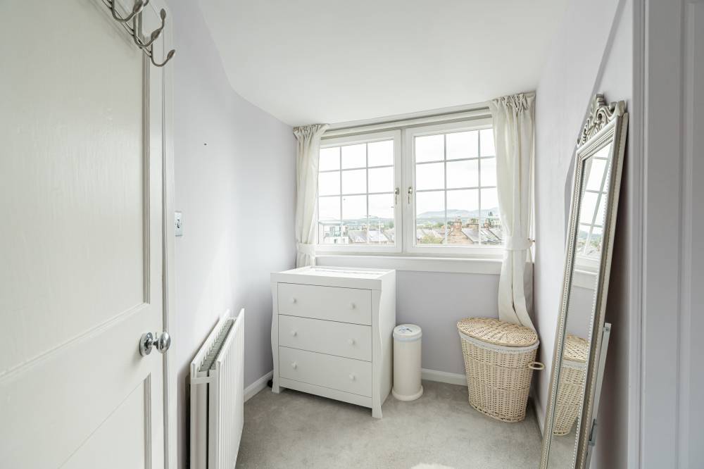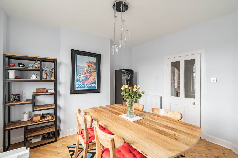 This bright and beautifully presented home briefly comprises: entrance vestibule and stairs to the upper floor, central hallway with storage, a generous twin windowed reception room with period fireplace housing a living flame gas fire, large second reception room, currently in use as a dining room but could also be used as a third bedroom, smart modern kitchen, fitted with a quality range of John Lewis wall and base units with integrated hob, cooker hood, double oven, fridge freezer, washing machine and dishwasher and back door to an external stair leading to the private garden. The first floor also has the family bathroom with white suite, over bath shower and ample vanity storage. Stairs from the hallway lead to the upper landing with access to extensive eaves storage space. The principal bedroom has large dormer windows to both the front and rear with far reaching views toward the Pentland Hills and built-in wardrobes, whilst the second double bedroom also has a dormer window and looks towards Arthur’s Seat and the city. Benefits on offer include gas central heating and full double glazing and ample built-in storage throughout the home.