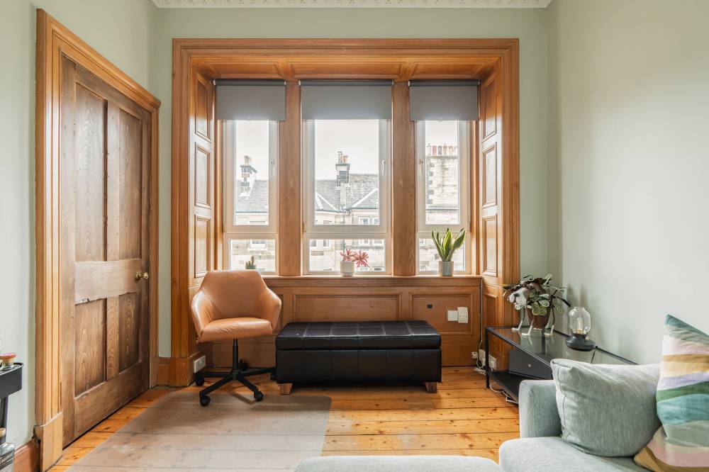 Internally the property has been decorated in tasteful neutral tones, with a variety of charming period features and would undoubtedly appeal to first time buyers and professionals. In brief the accommodation comprises, secure entry system, welcoming hallway with useful storage and pully, light and airy reception room with beautiful cornicing and Edinburgh press, spacious fitted kitchen with dining recess and pantry, well proportioned double bedroom and bathroom with three-piece suite and electric shower over bath. Further benefits include gas central heating and double glazing.