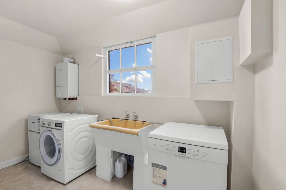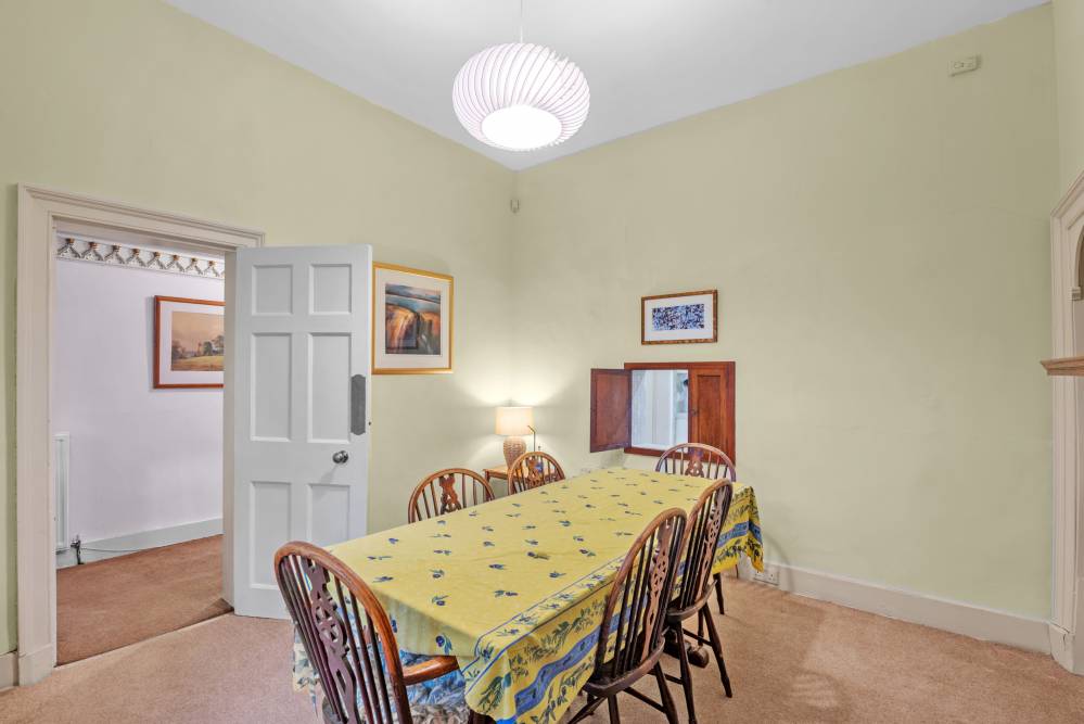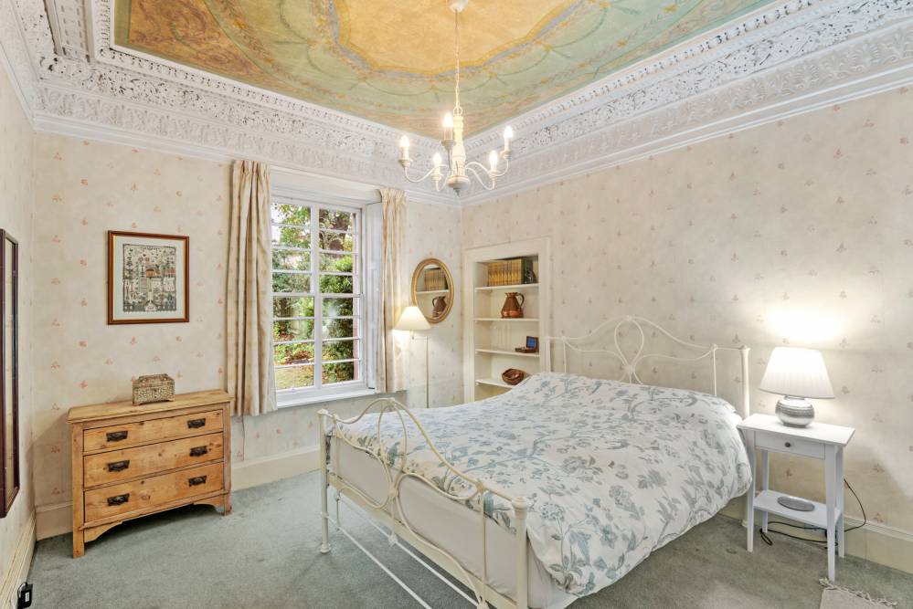 The house offers generous and flexible accommodation over two floors set within substantial garden grounds, providing the ideal setting for both family life and entertaining, along with scope for further extension if desired (subject to the usual planning and consents). Believed to have once been the home of a master craftsman, the house features impressive plasterwork of historic and architectural significance to the vaulted ceiling in the hall and to the principal bedroom, which features a stunning painted ceiling and ornate cornice and ceiling rose. To the ground floor the house has been extended to the side, creating two additional rooms which can be used flexibly as bedrooms or reception rooms or offer the ideal work-from-home space with direct access to the rear. The accommodation briefly comprises: entrance porch, hallway with cloaks storage, dining room to the front with serving hatch to the kitchen which is to the side of the house with walk-in pantry and small hallway leading to the utility room to the rear with door to the garden. There are two bedrooms to the original part of the house on the ground floor and two within the side extension which also has a guest WC. A curved stone staircase rises to the galleried upper landing where there is a delightful dual aspect drawing room with charming period features, two further bedrooms and a family bathroom with white suite and over bath shower.