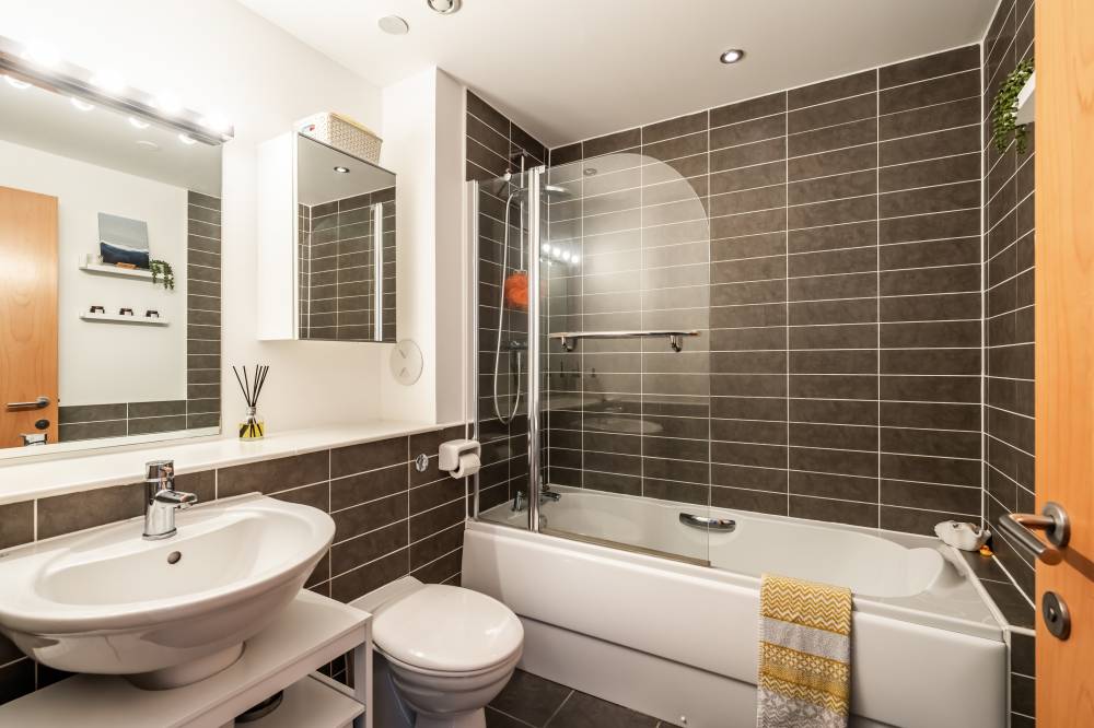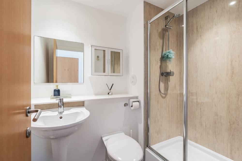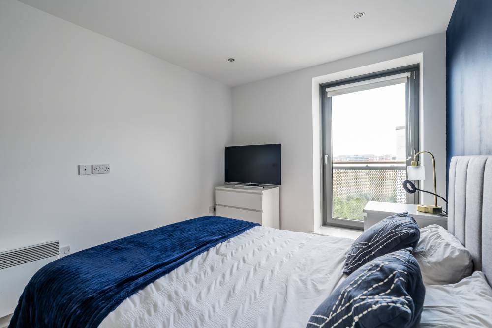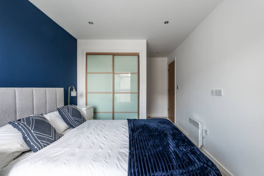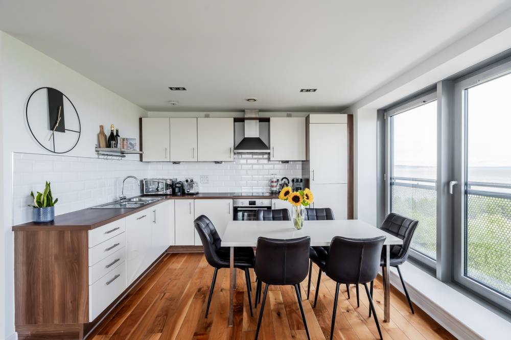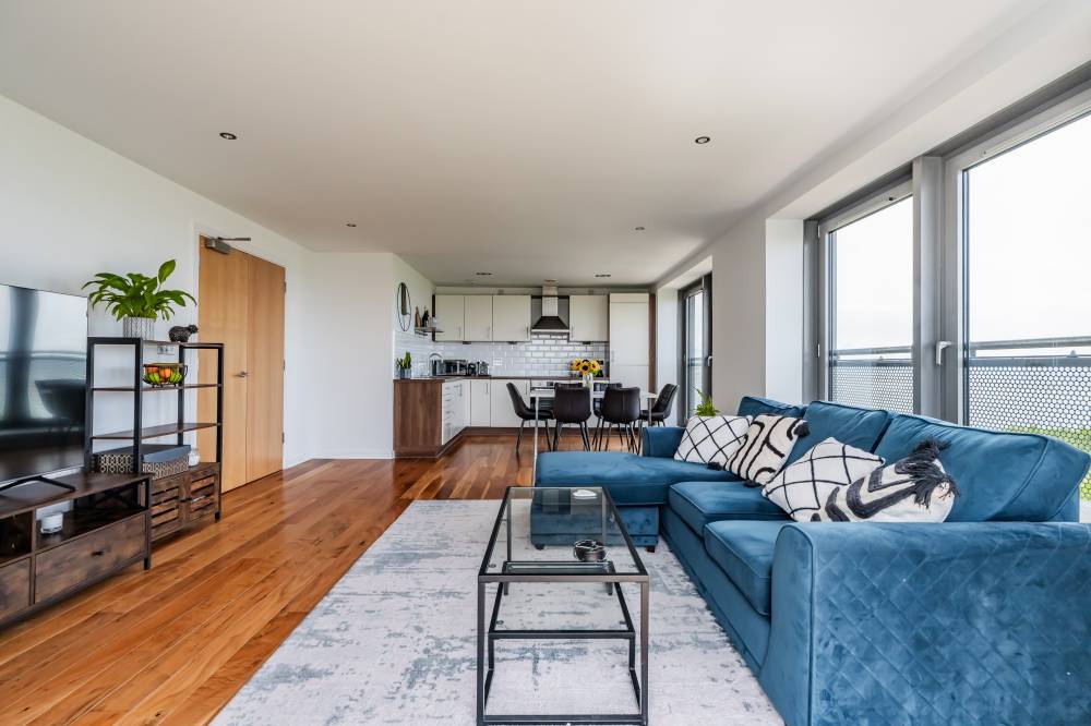 Entering via a welcoming reception hallway, you’re led into a spacious and stylish open-plan living and dining area, ideal for both relaxing and entertaining. The room features contemporary décor, dual-aspect outlooks, Juliette balconies, and ample space for furnishings. The modern kitchen is set just off the living space and is fully fitted with integrated appliances, including a fridge freezer, oven, hob, and dishwasher. A handy utility cupboard off the hallway houses plumbing for a washing machine and offers additional storage. Both bedrooms are generous doubles with built-in wardrobes, providing excellent storage. The principal bedroom benefits from a sleek en-suite shower room, while the second bedroom is served by a separate family bathroom complete with a bathtub. Both bathrooms are finished to a high standard with modern fixtures and fittings. This is a superb opportunity to acquire a contemporary home in a prime waterfront location, ideal for professionals, couples, or as an investment.