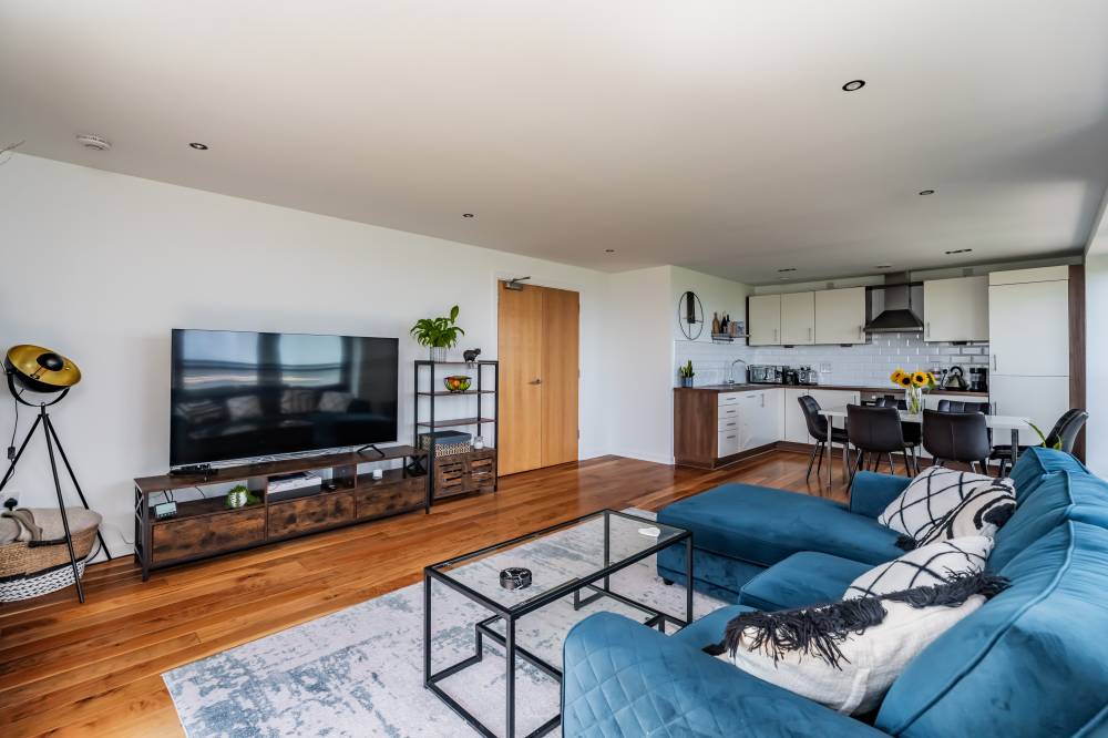 CLOSING DATE TUESDAY 23RD SEPTEMBER AT 12NOON. A beautifully presented two-bedroom apartment with stunning waterfront views in the sought-after Western Harbour View development. Located on the 5th floor of a modern, well-maintained building with lift access and secure underground parking, this impressive apartment forms part of the desirable Western Harbour View development in Newhaven’s vibrant waterfront district. The property enjoys uninterrupted panoramic views over the water, with large windows in every room flooding the space with natural light and creating a bright, open atmosphere throughout.
