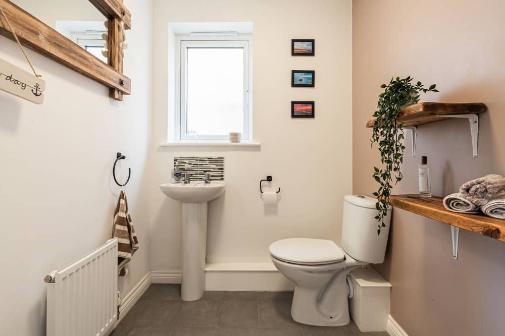 Internally the property is in excellent decorative order throughout and offers well-proportioned accommodation which briefly comprises: entrance hallway with stair to the upper level and convenient downstairs WC, bright reception/dining room which features laminate flooring and doors opening out to a south facing private garden, well equipped modern kitchen which has been fitted with a variety of white base and wall mounted units, with contrasting worktops, and a range of built-in appliances, two good sized double bedrooms, and family bathroom with three piece white suite, splash tiling and over-bath mains shower.