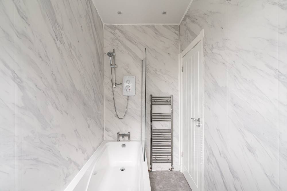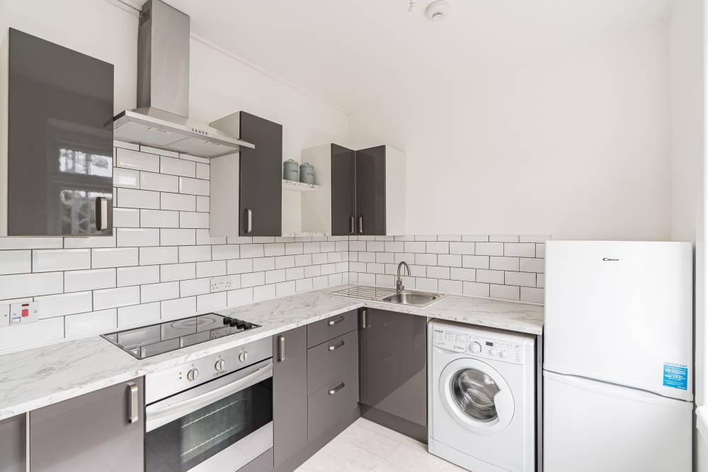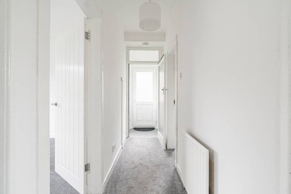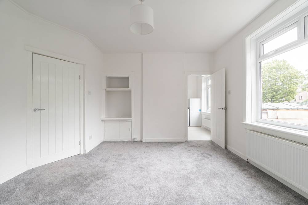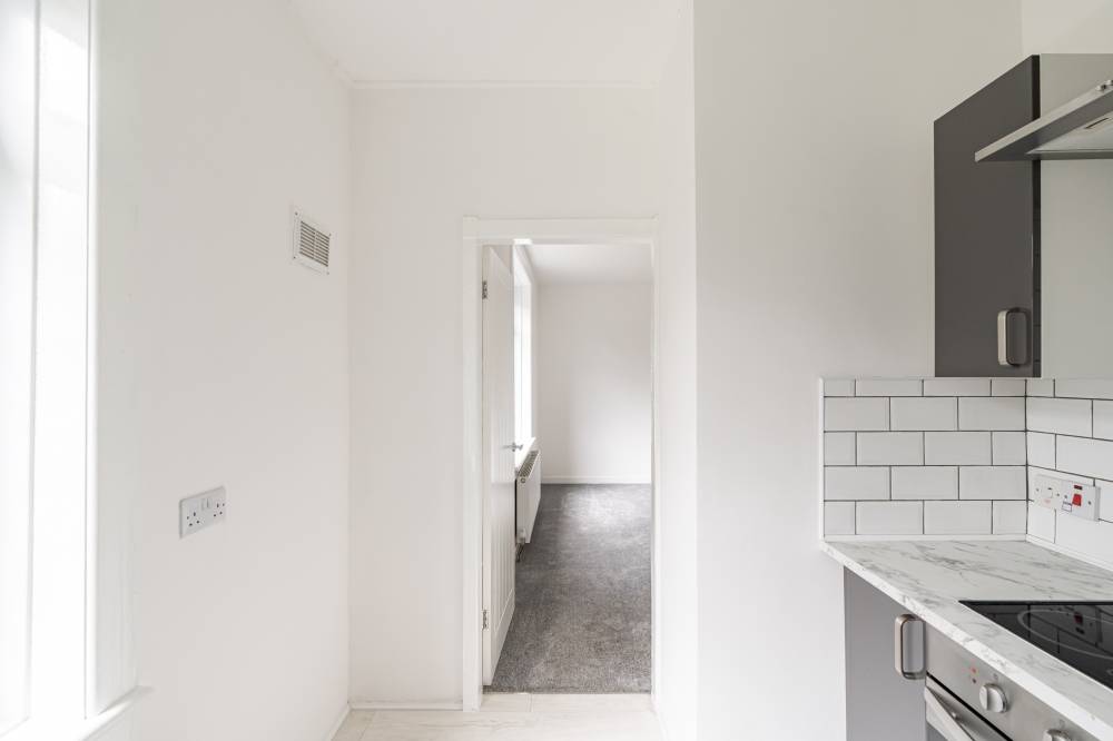 The property has been fully refurbished throughout and is presented in move-in condition, featuring a newly installed kitchen and bathroom, fresh neutral décor, and quality new flooring. A welcoming vestibule with storage leads into a central hallway providing access to all rooms. The bright reception room enjoys a rear aspect overlooking the garden and includes a useful shelved recess for storage. The modern kitchen is fitted with sleek contemporary units, stylish subway-style splashback tiling, and a combination of integrated and freestanding appliances. Both double bedrooms are generously sized and positioned to the front of the property, offering flexible space for a variety of needs. The bathroom is fitted with a white three-piece suite and benefits from an electric shower over the bath, complemented by low-maintenance acrylic wet wall panelling.