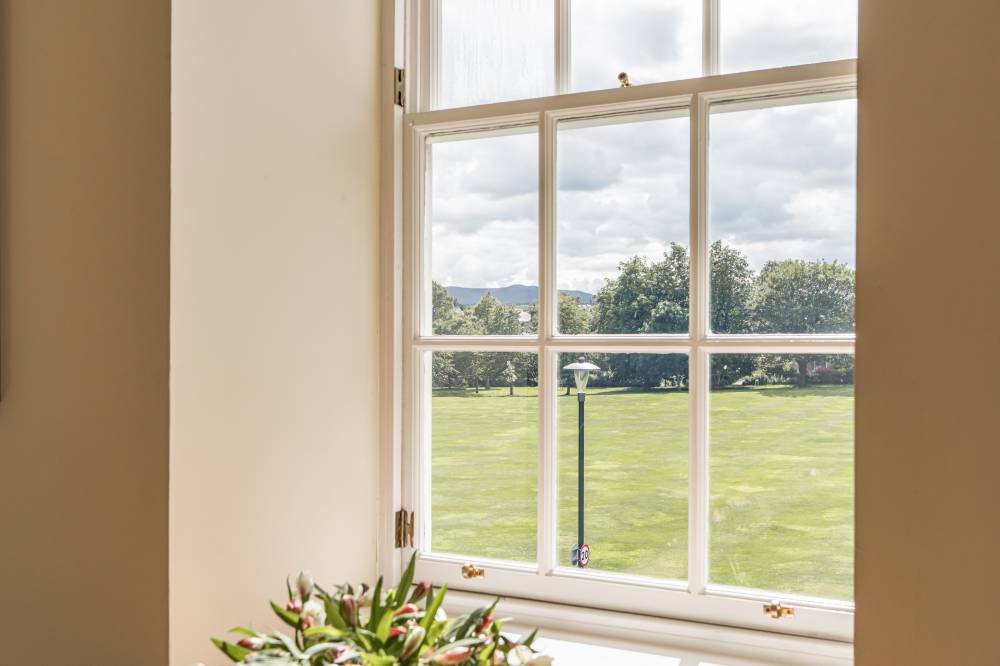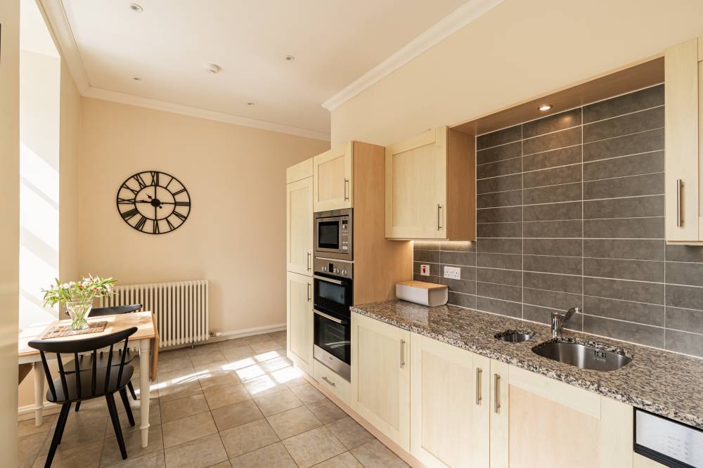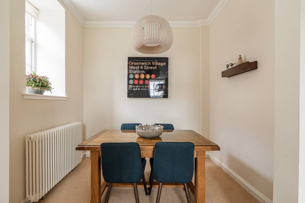 Accessed via a secure and well-maintained communal entrance, this impressive flat opens into a welcoming entrance vestibule, providing a practical space for coats and shoes. From here, you step into a generous central hallway, beautifully enhanced by a striking circular cupola that floods the space with natural light and creates a bright, airy atmosphere at the heart of the home. The spacious sitting room enjoys an open outlook over the beautifully landscaped communal gardens, offering a peaceful and picturesque setting. This well-proportioned room provides a versatile layout, easily accommodating both lounge furniture and a dedicated dining area, ideal for hosting guests or enjoying quiet evenings in.