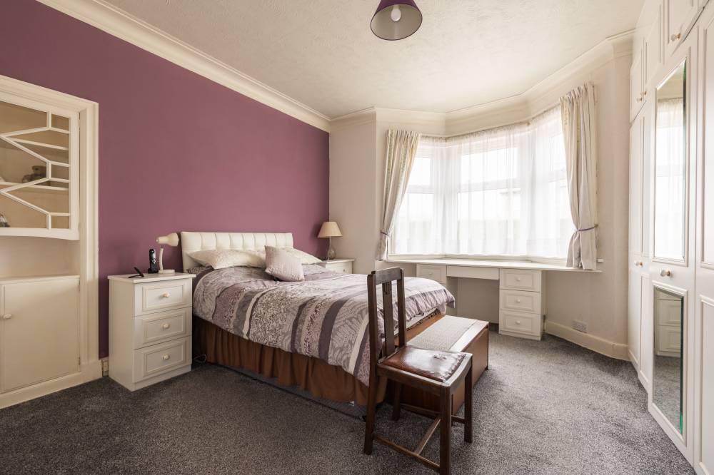 Upon entering, a welcoming vestibule leads into a wide and central hallway, providing access to the main living areas and bedrooms. The generously sized reception room enjoys a sunny southern aspect, overlooking the rear garden. This comfortable and inviting space features a focal fireplace, making it ideal for relaxing evenings or entertaining guests. The well-appointed kitchen is fitted with solid wood wall and base units, offering ample worktop and storage space along with room for dining. It provides a practical layout for everyday family living and includes access through to the bright conservatory at the rear. The conservatory is an excellent addition to the home, offering a peaceful retreat with garden views, perfect for enjoying all seasons. The principal bedroom, located to the front of the property, is a spacious double room with a bay window that floods the space with natural light. It also features built-in wardrobes and additional storage. A second double bedroom also enjoys a front aspect and includes integrated storage, while a third double bedroom with a side-facing window offers flexibility as a guest room, study, or nursery. The shower room includes a modern three-piece suite comprising a WC, wash basin, and bidet, along with a glass-enclosed thermostatic shower.