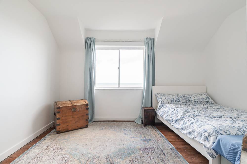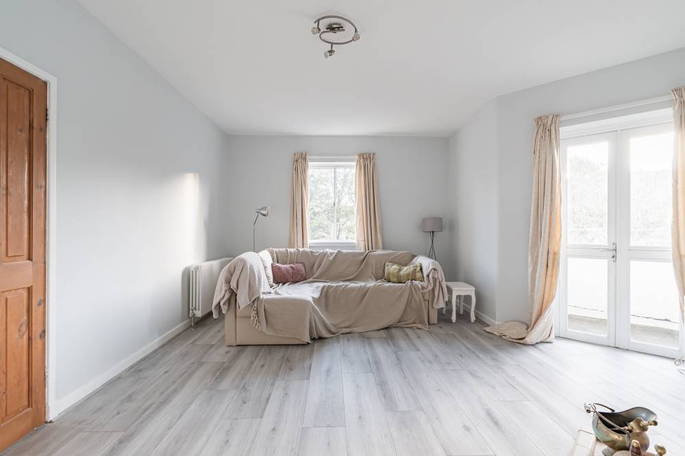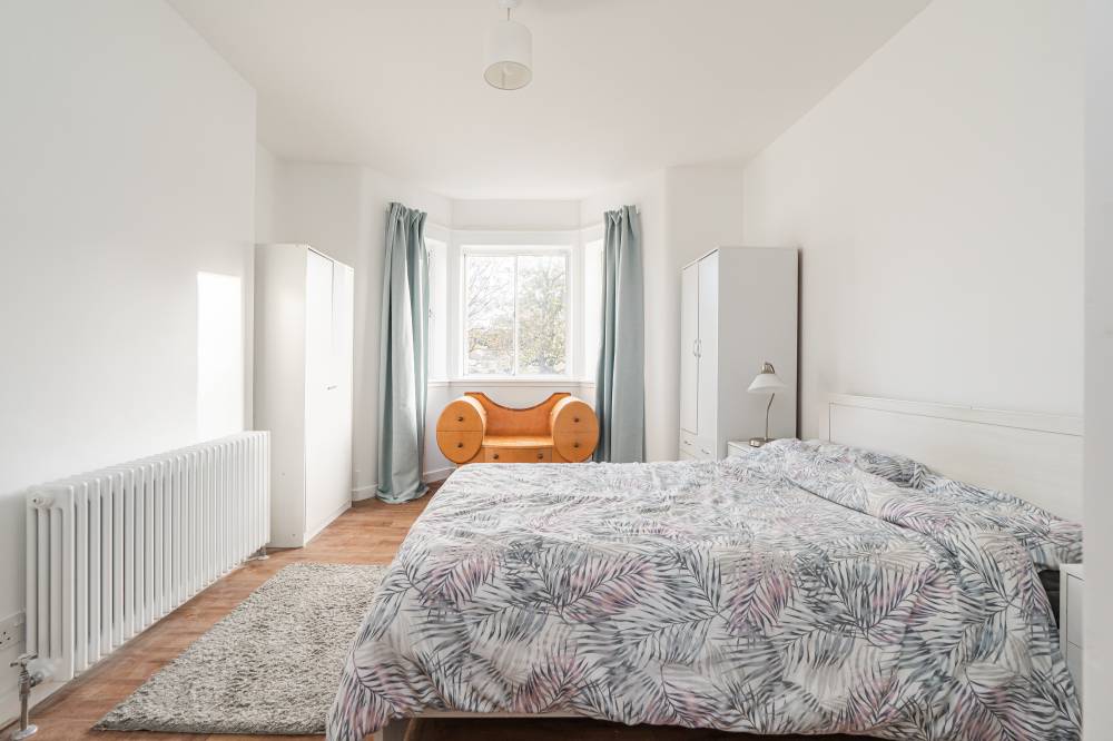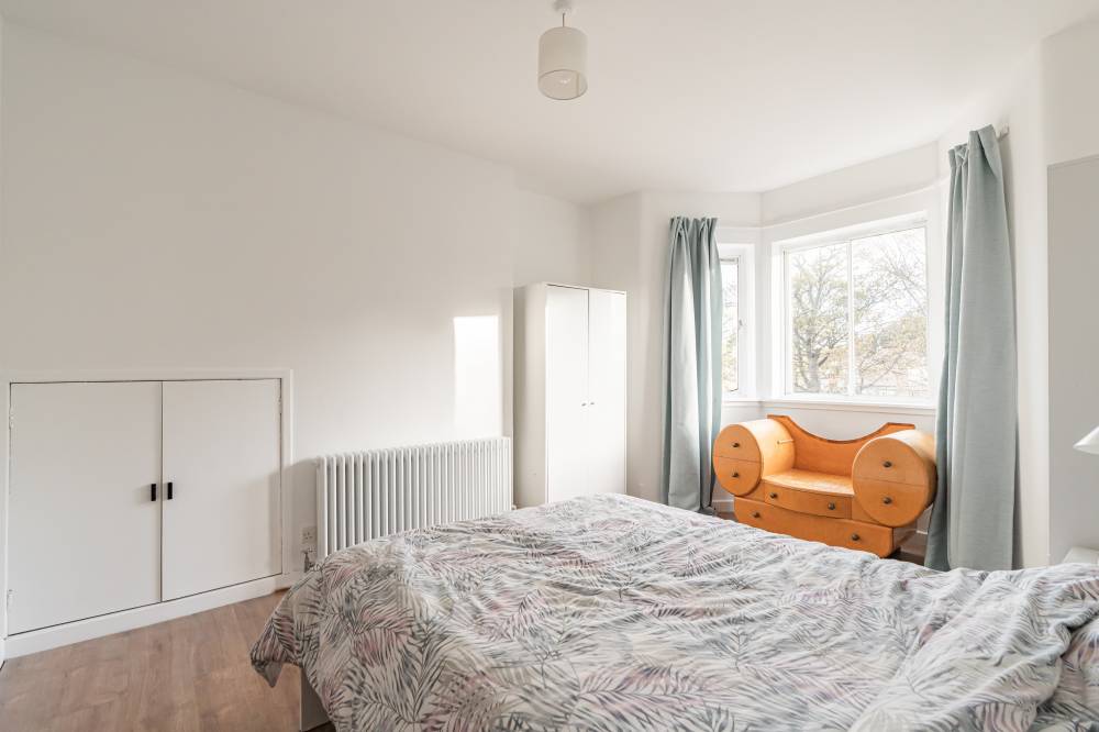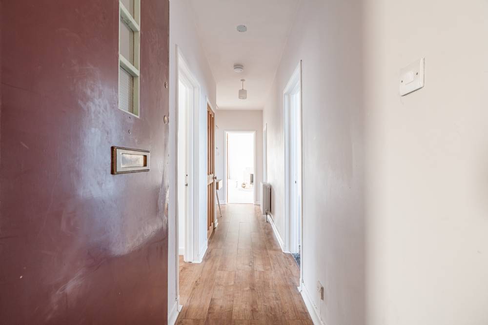 Accessed via a well-maintained communal stair, at the top floor the front door opens to a welcoming L-shaped hallway with useful built-in storage and ideal home-office space. The generous reception room is to the front, with an open fireplace and glazed door to the southwest facing balcony. The dining kitchen is to the rear and enjoys superb views to the water, there is an original built-in dresser and modern base units with space for a cooker, washing machine and fridge freezer. Two large storage cupboards, one which houses the Worcester combi boiler, provide useful additional storage and there is ample space for a dining table and chairs. The principal bedroom has a bay window to the front and built-in storage cupboard whilst the generous second double bedroom to the rear enjoys the wonderful view. A bathroom with white suite, double ended bath and over bath shower completes the accommodation. Benefits include gas central heating and useful external storage – a cupboard on the landing outside the front door and a lock-up at ground floor level ideal for bikes, buggies or garden equipment.