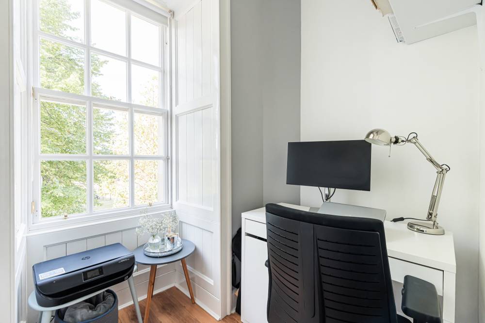 Combining the grandeur of its heritage with modern comforts, the property is offered to the market in true-move-in condition. The beautifully presented, flexible accommodation which is arranged over four floors comprises; welcoming reception hall with practical two-piece WC apartment. A spiral staircase leads to the first floor where the south-facing sitting room can be found, affording magnificent open views and featuring an open fire and working shutters, this room offers an elegant yet welcoming space. The sizeable dining room offers an ideal setting for family gatherings and entertaining, while also providing versatility to serve equally well as a generous double bedroom. The contemporary kitchen, which also enjoys incredible open views, is fitted with a range of wall and base units with built-in hob with hood above, separate electric oven with further appliances included in the sale. A dedicated study enhances the home’s versatility, ideal for modern working life. Located on the second floor is the substantial principal bedroom featuring a large three-piece modern en-suite bathroom with built-in storage with quaint porthole-style window with views across to Fife. There is a further good sized double bedroom together with a stylish four-piece bathroom. The top floor really does offer the most superb views from the third double bedroom and there is a convenient two piece WC apartment. Further benefits include gas central heating and it should be noted that there are excellent storage provisions throughout the property with a private external store. Resident’s also have access to private parking and there is a single garage adjacent to the property.