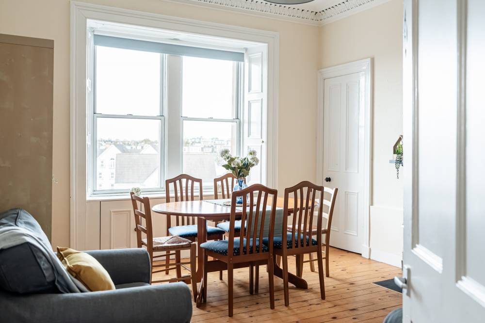 The accommodation in brief comprises; secure entry system, welcoming hallway with useful utility cupboard, light and airy twin windowed reception/dining room with fireplace and nice open views, internal fitted kitchen with appliances, two well proportioned double bedrooms – one of them with fitted wardrobes, bathroom with electric shower over bath and separate WC. Further benefits include gas central heating and double glazing.