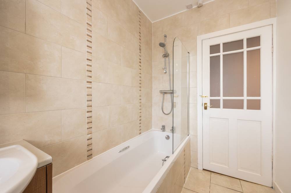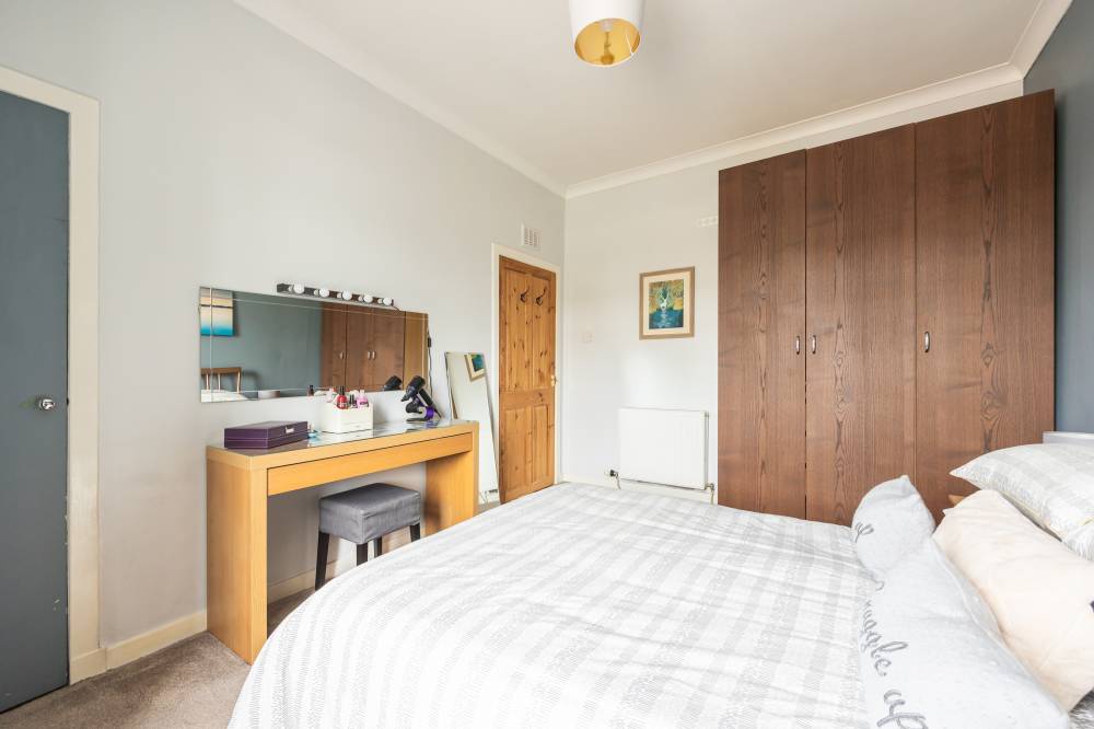 The accommodation comprises a welcoming entrance vestibule with a handy storage cupboard, leading into the central hallway which provides attic access (partially floored) alongside two further large storage cupboards. The bright and airy lounge/diner enjoys a pleasant open aspect and features a traditional press cupboard. A fully fitted kitchen sits to the rear, complete with a range of integrated and freestanding appliances, partially tiled splash areas, and ample workspace. There are two well-proportioned double bedrooms: the principal bedroom is front-facing with a large storage cupboard and views over Lothian Street, while the second double bedroom is set to the rear and benefits from a further press cupboard. The bathroom completes the accommodation, fitted with a shower-over-bath, partially tiled surrounds, and a heated towel rail.