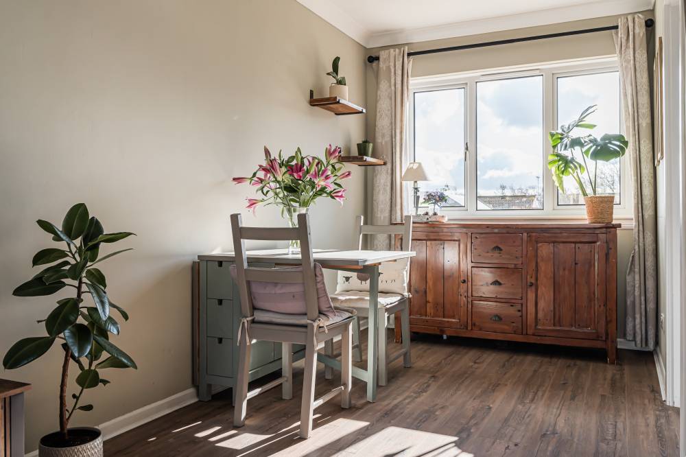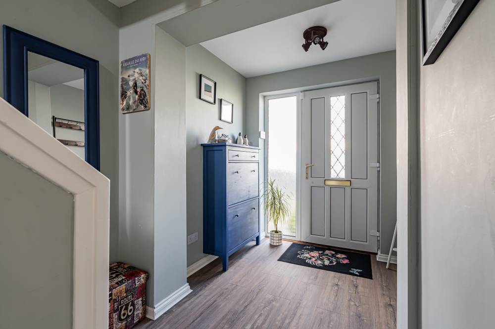 The stylish accommodation in brief comprises; entrance porch leading to welcoming entrance hallway, generously proportioned and bright dual-aspect lounge/dining, modern fitted kitchen with door providing direct access to the private rear garden, two well proportioned double bedrooms and contemporary bathroom with three-piece suite and shower over bath. Further benefits include gas central heating and double glazing.