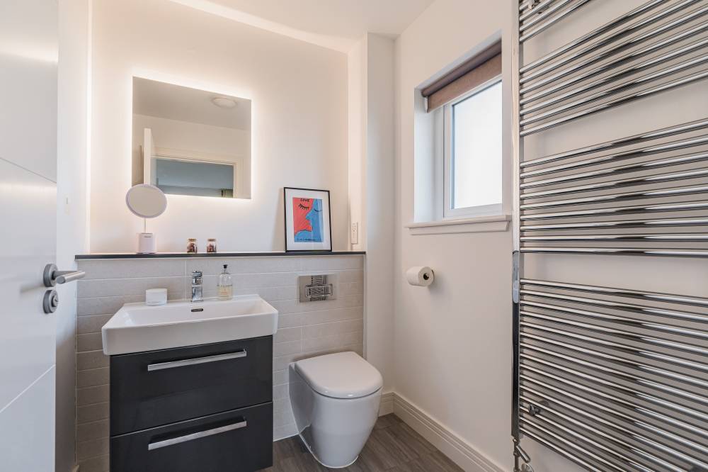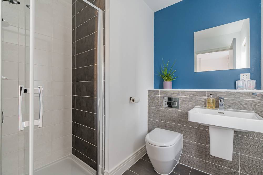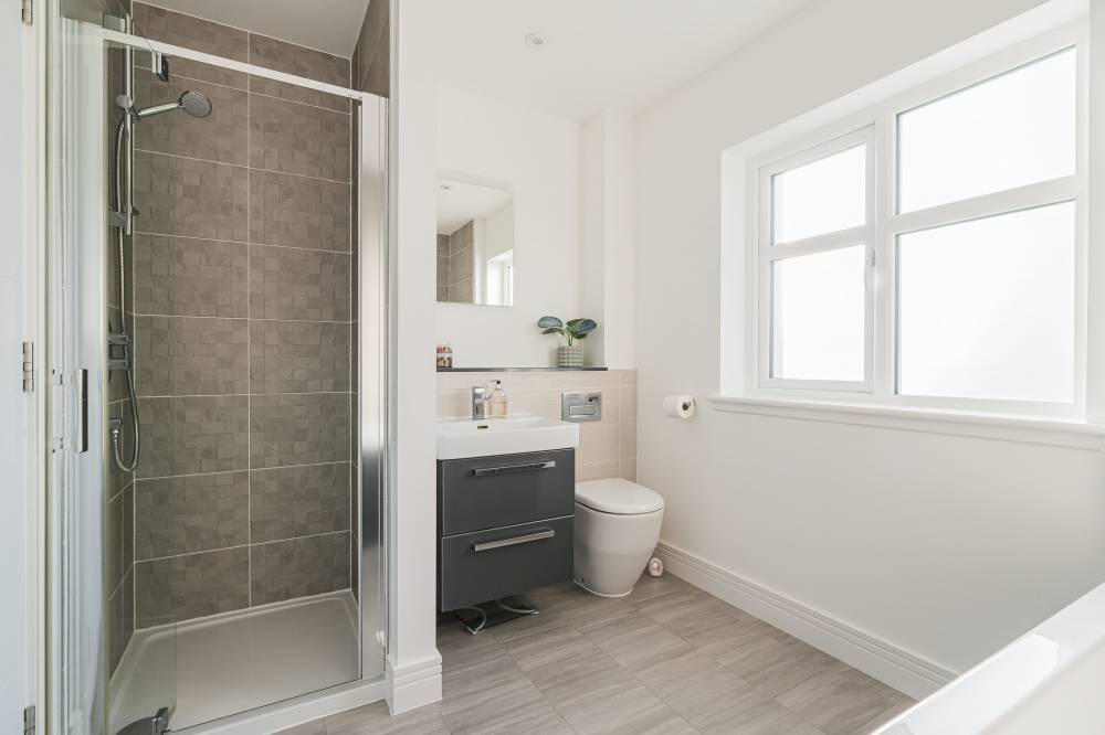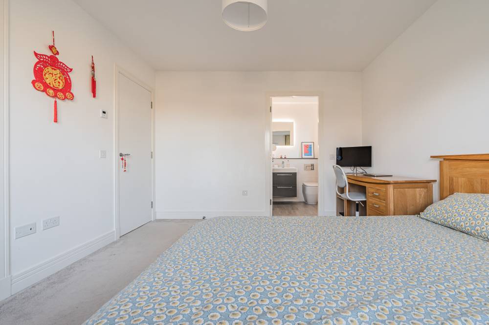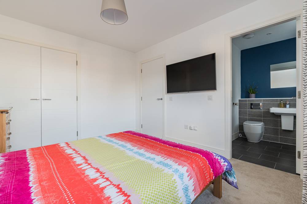 Moving upstairs there are four good size double bedrooms all with built in wardrobes and two with en-suite shower rooms, and a family bathroom with a four-piece white suite including a bath and separate shower cubicle. The property further benefits from double glazing, solar panels and hybrid heating system (Gas/Air Source Heat Pump), contributing to its excellent EPC B energy efficiency.